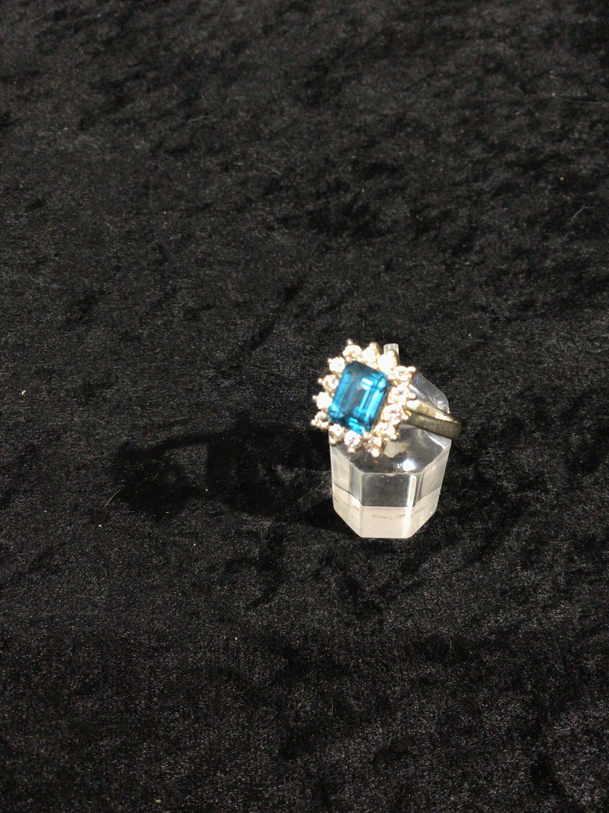 Modern Silver Ingot Rectangle Cut Swiss Blue Topaz Halo Ring