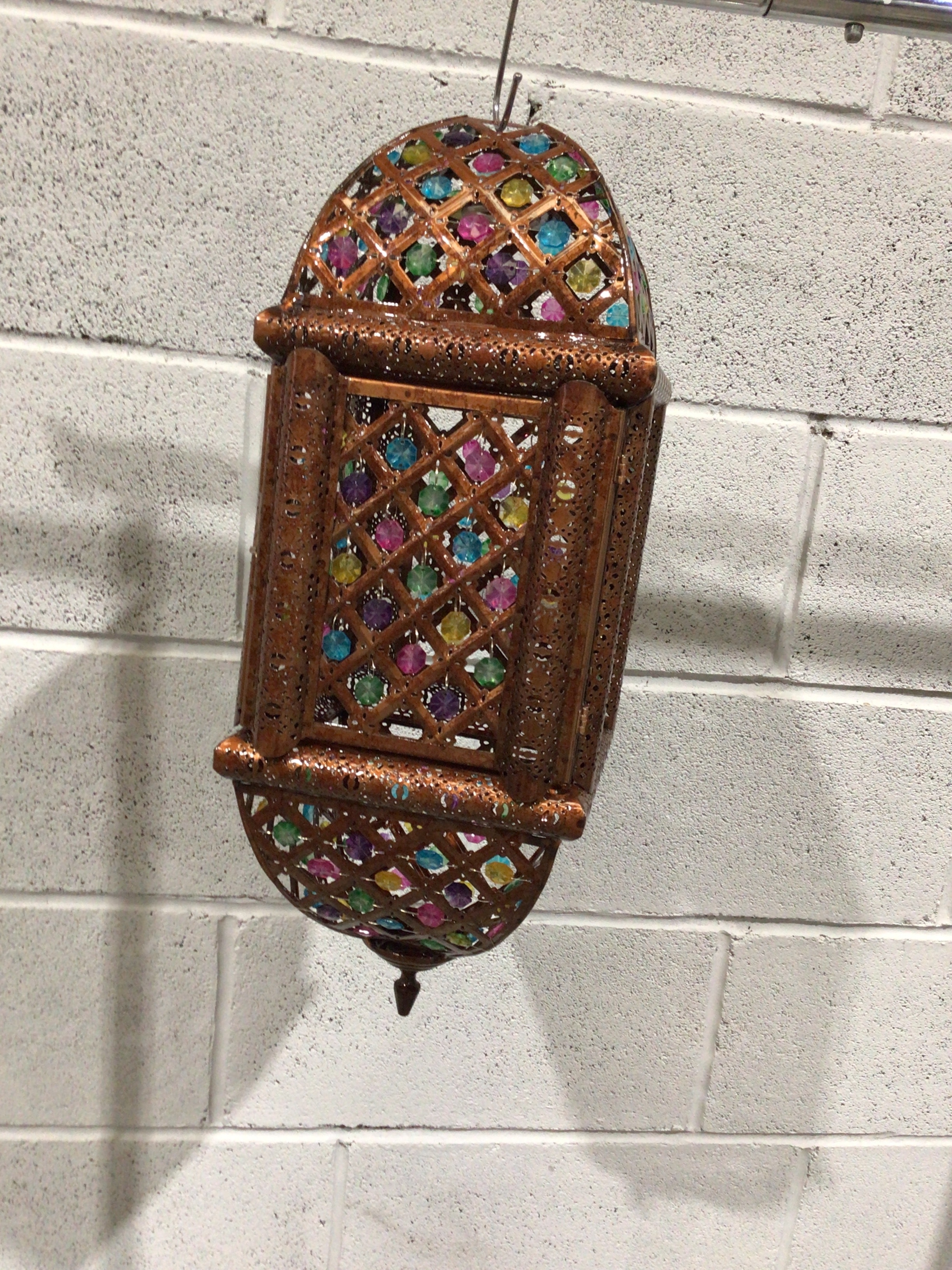 A Modern Moroccan Style Copper-Toned Metal Hanging Lantern Light Shade