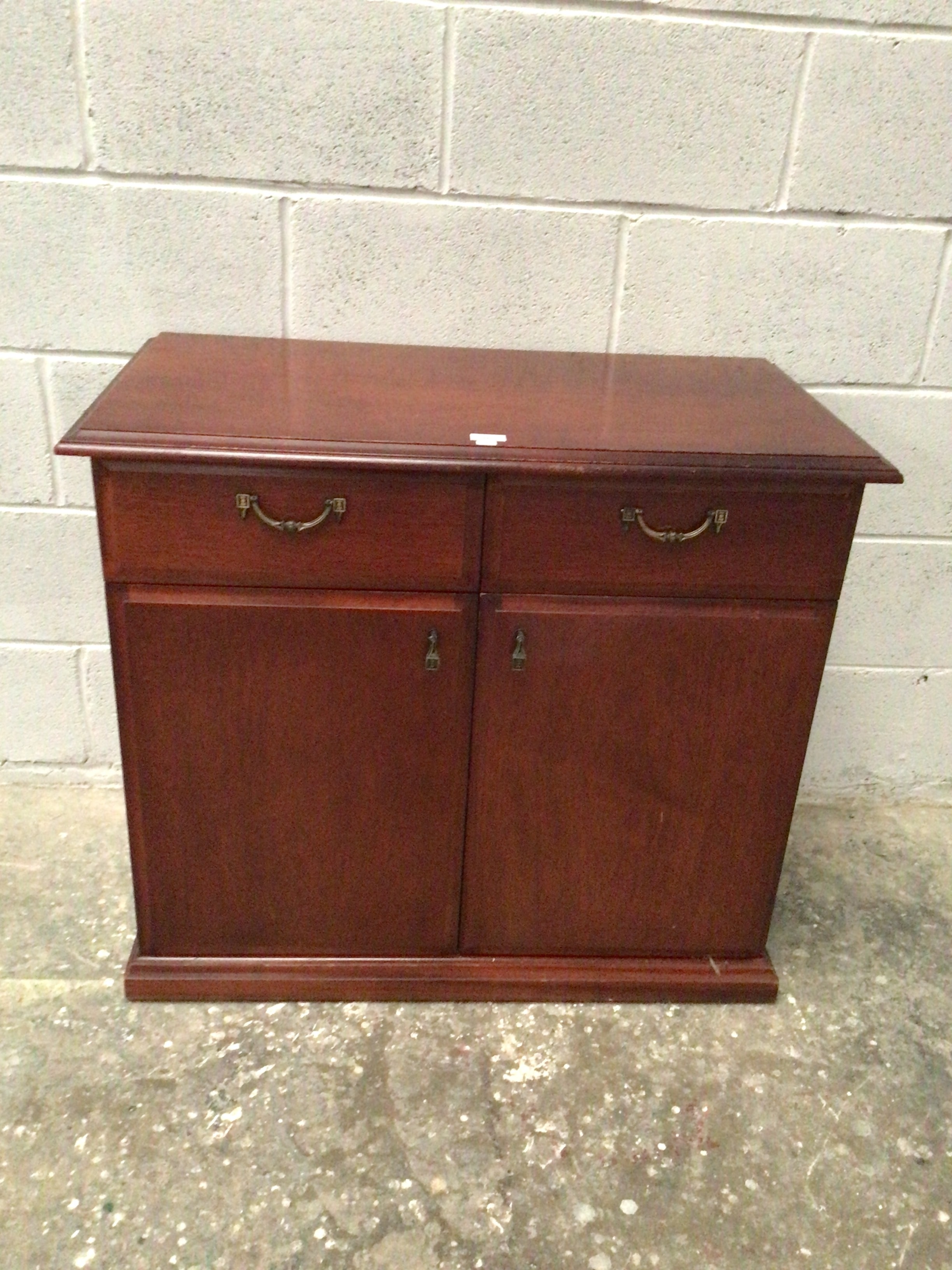 A Transitional Mahogany-Toned Sideboard Cabinet with Two Drawers and Two Doors