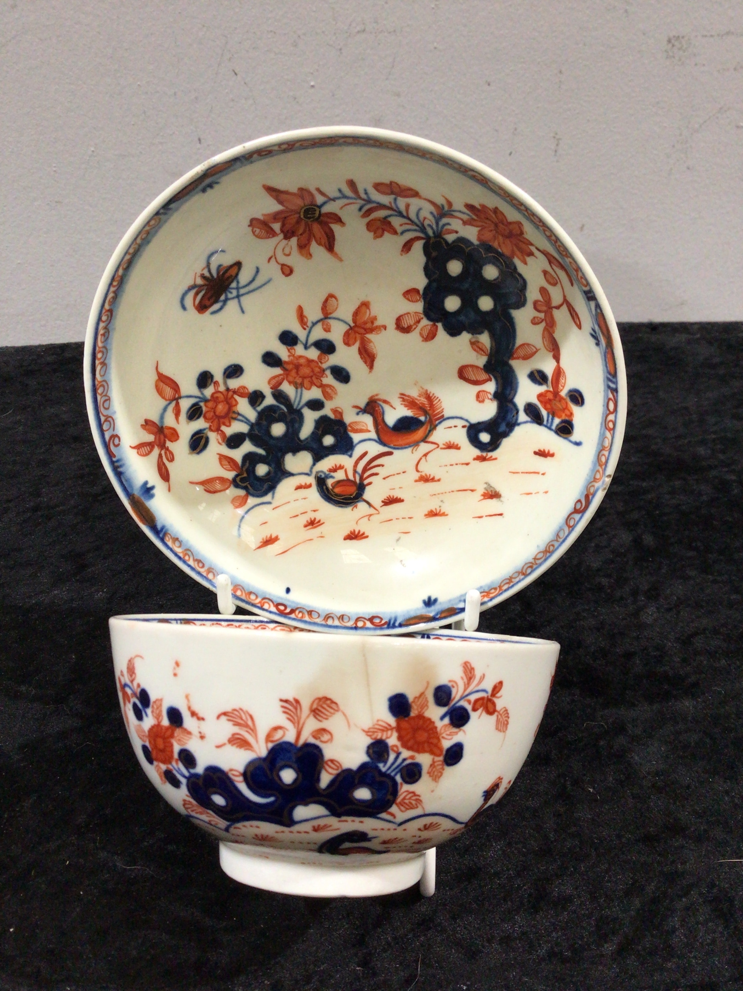 An 18th Century Lowestoft Porcelain Tea Bowl and Saucer, Two Bird Pattern
