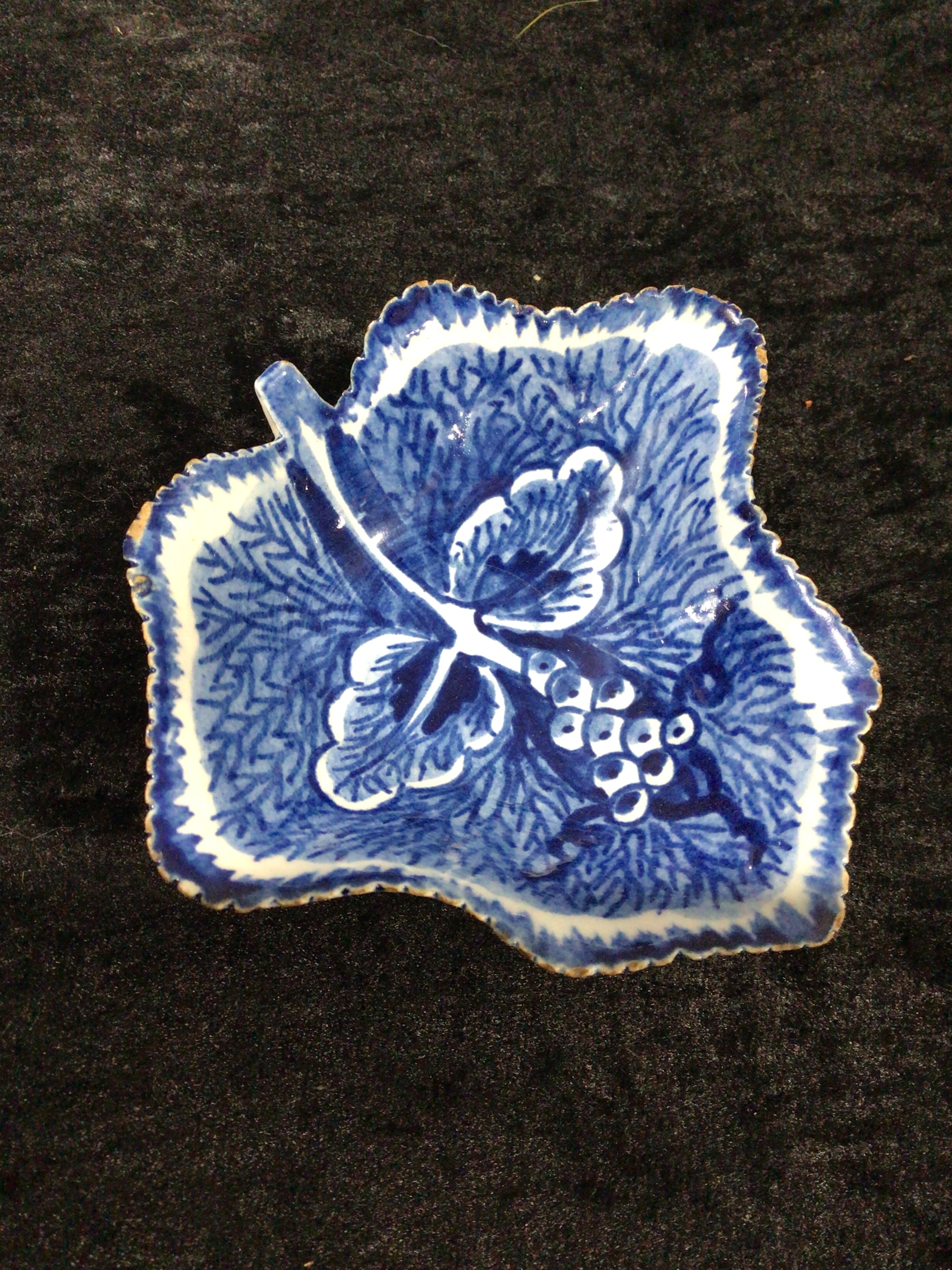 An 18th Century English Bow Porcelain Blue and White Leaf-Form Pickle Dish