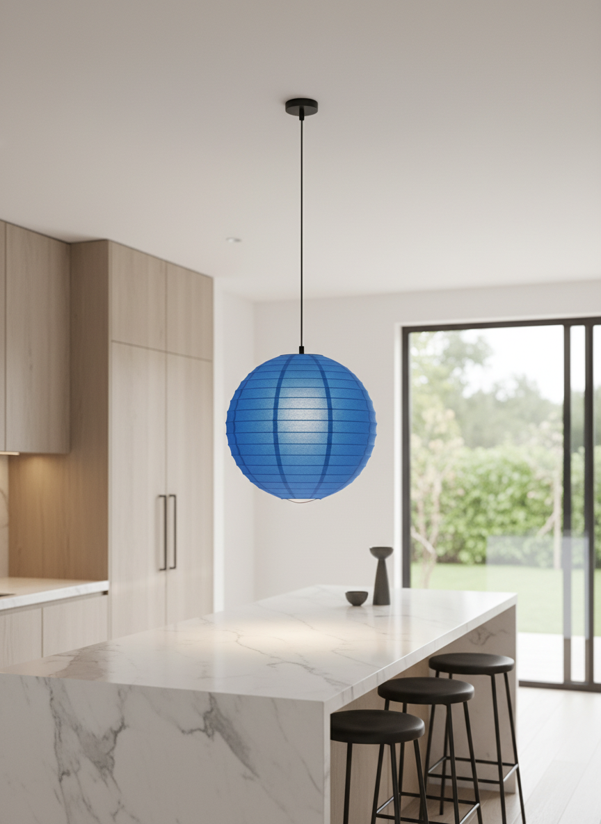 A Set of 50 Blue 16-Inch Ribbed Chinese Paper Lanterns