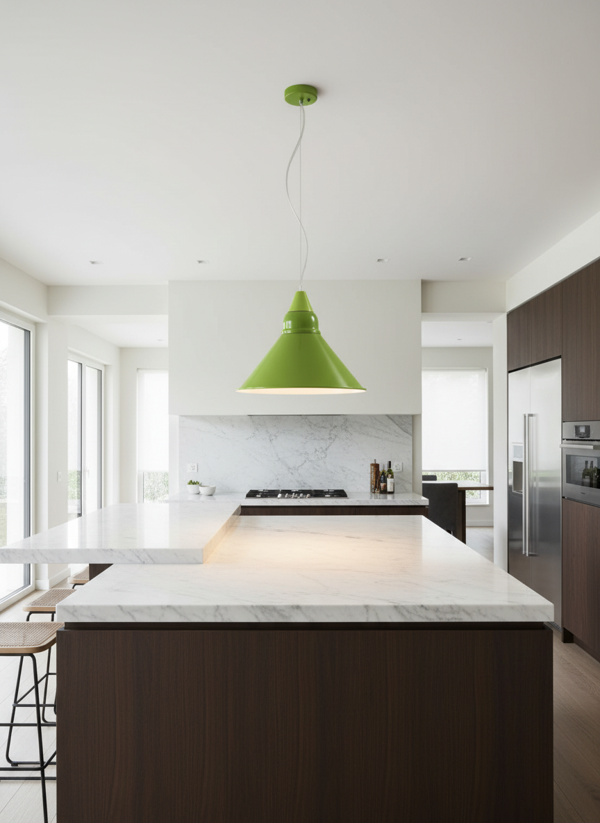 A Pair of Lime Green Metal Pendant Light Fixtures
