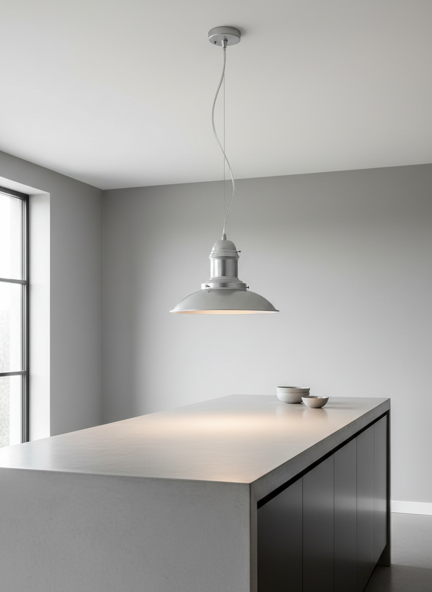 A Pair of Industrial Silver Metal Pendant Light Fixtures