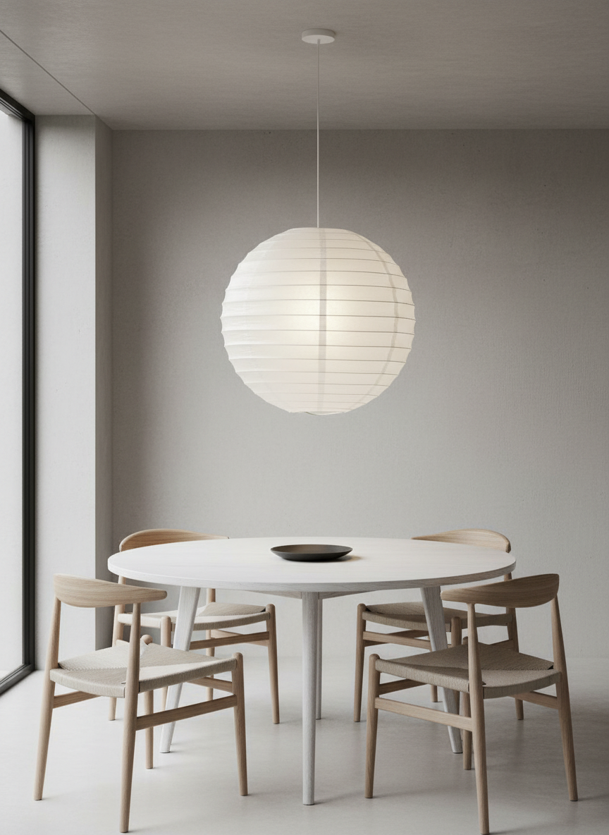 Fifty round white paper lanterns, each approximately 16 inches, with horizontal ribbing.