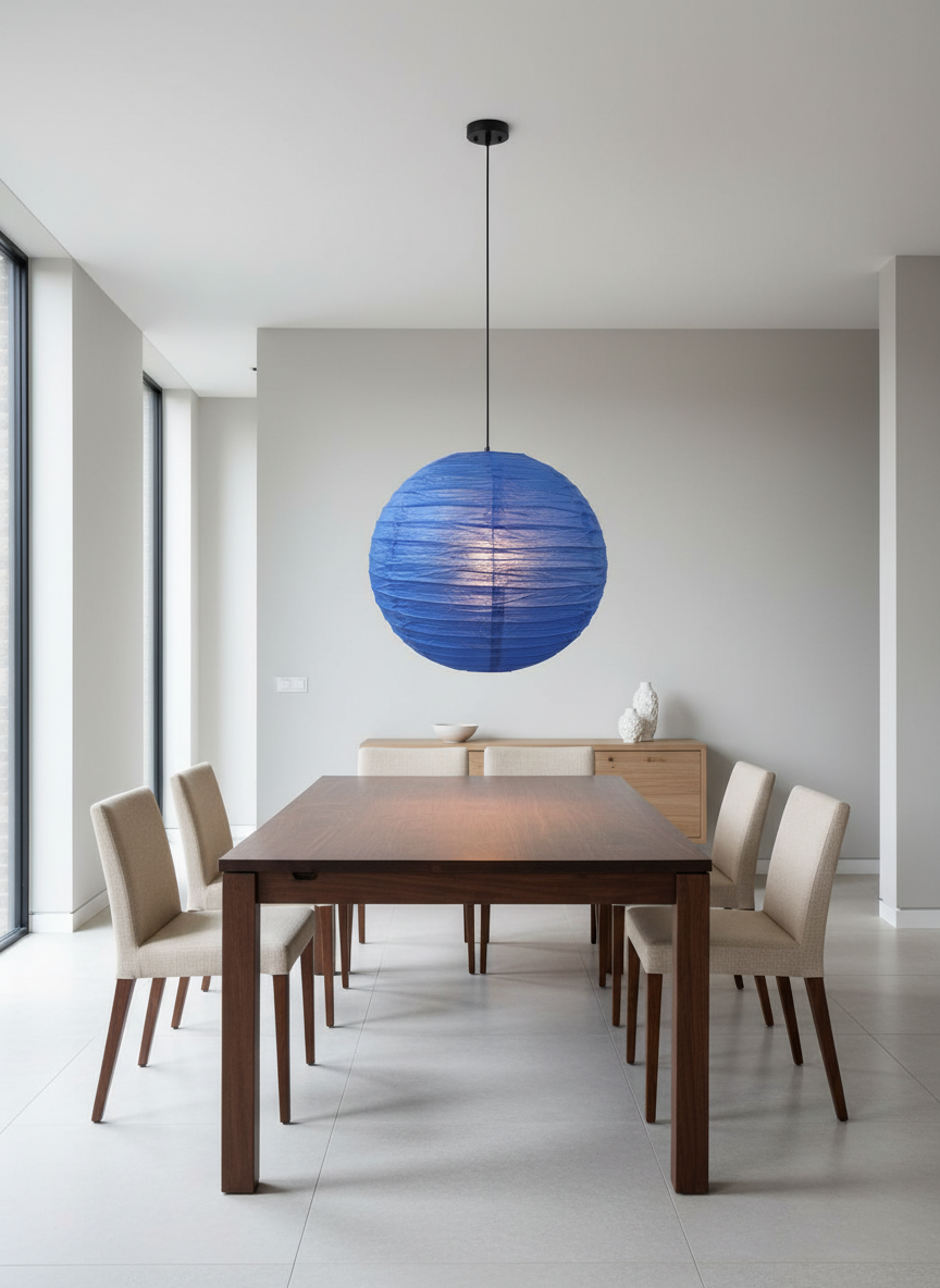 A Set of 60 14 Inch Navy Blue Round Paper Lanterns with Even Ribbing