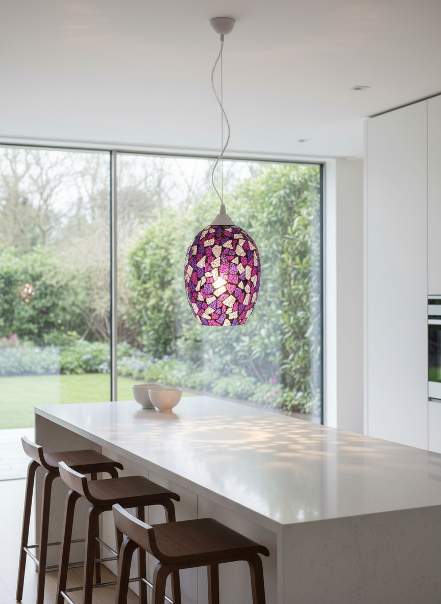 Purple and Silver Mosaic Glass Hanging Ceiling light