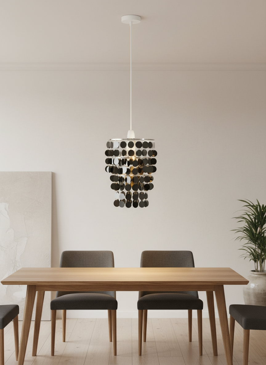 Five boxed black PVC Disc Pendants, easy-fit and non-electrical, recommended for a 60 watts max bulb (not included), each measuring 205mm Width x 309mm Height.