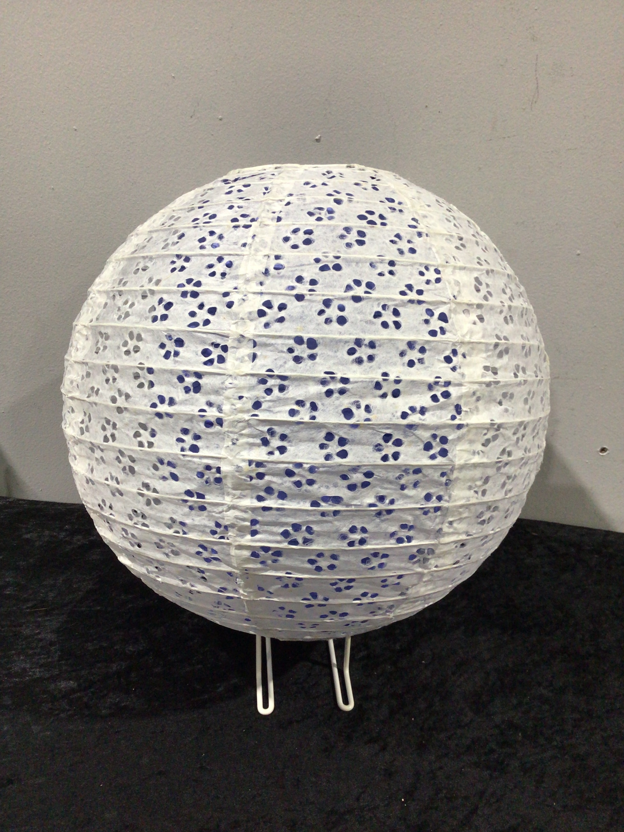 A set of 50 spherical paper lantern shades, exhibiting an East Asian aesthetic. Each lantern is crafted from white paper over a collapsible frame with horizontal ribs. The surface features a repeating pattern of small, multi-lobed cut-outs, revealing an internal blue layer. No discernible text, symbols, or manufacturer’s markings are visible.