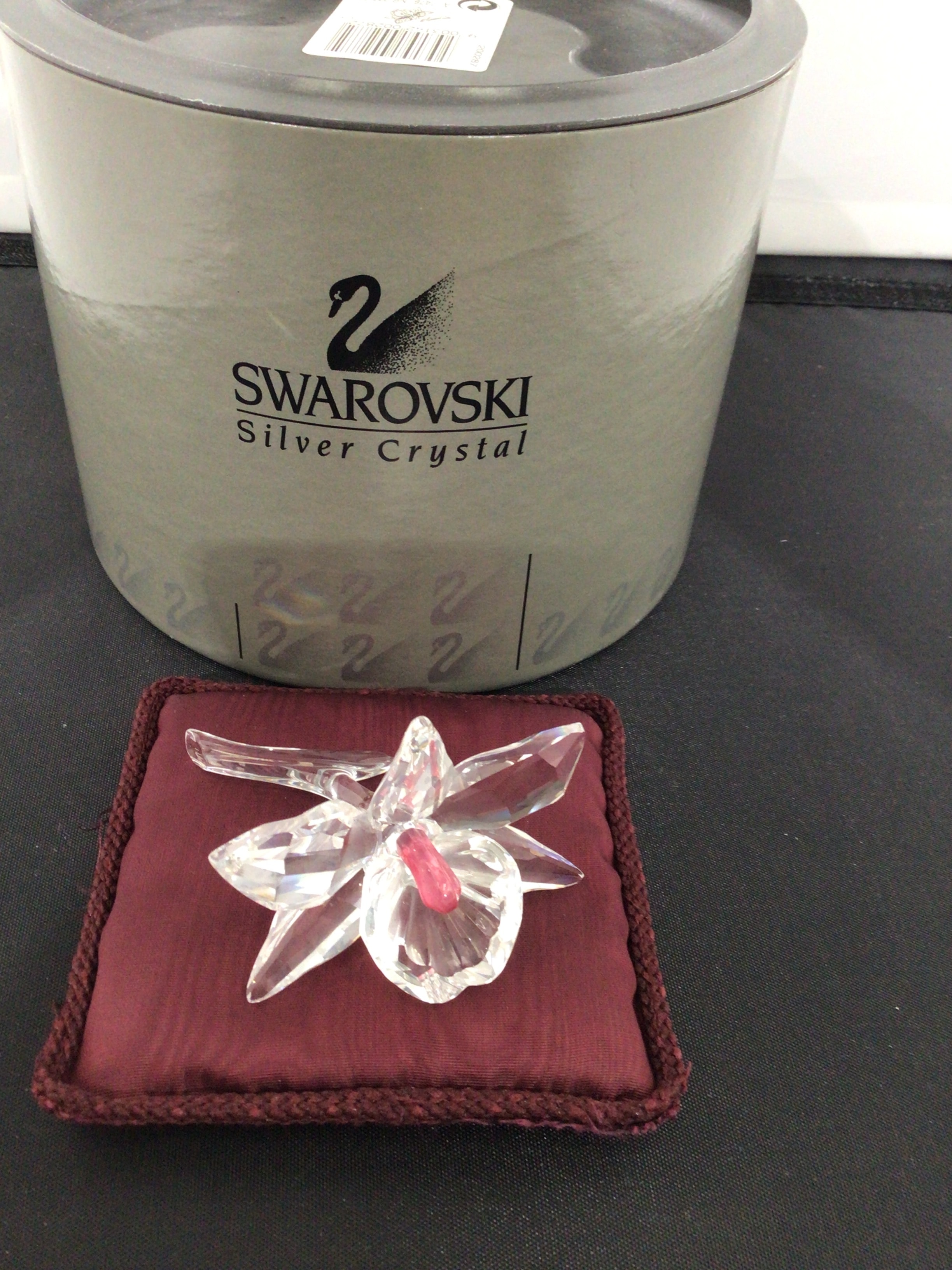 Swarovski Silver Crystal Orchid Figurine with Original Box