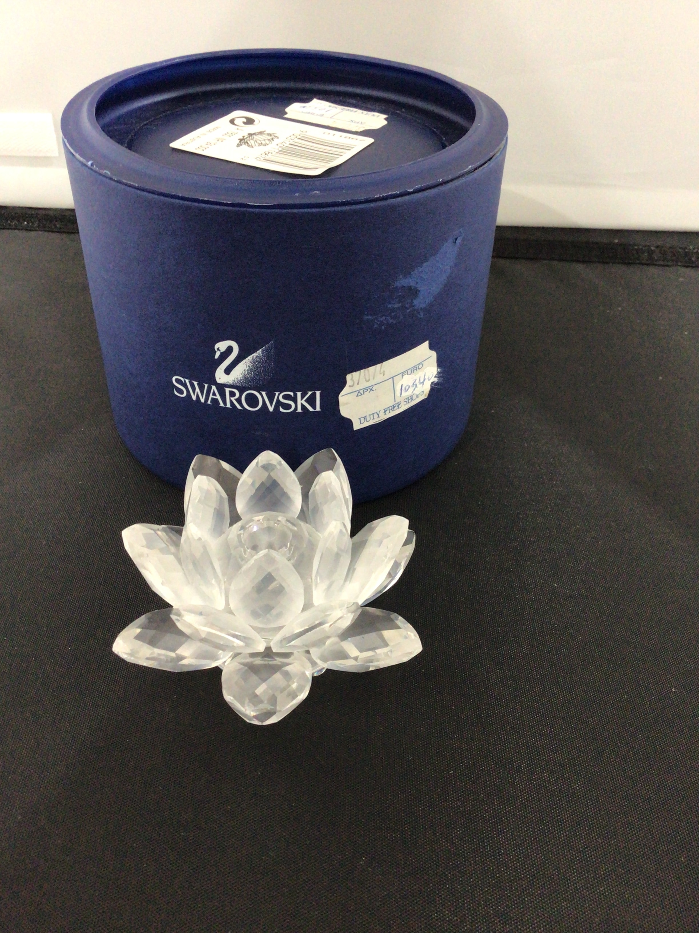 A Swarovski Crystal Lotus Flower Sculpture with Original Box