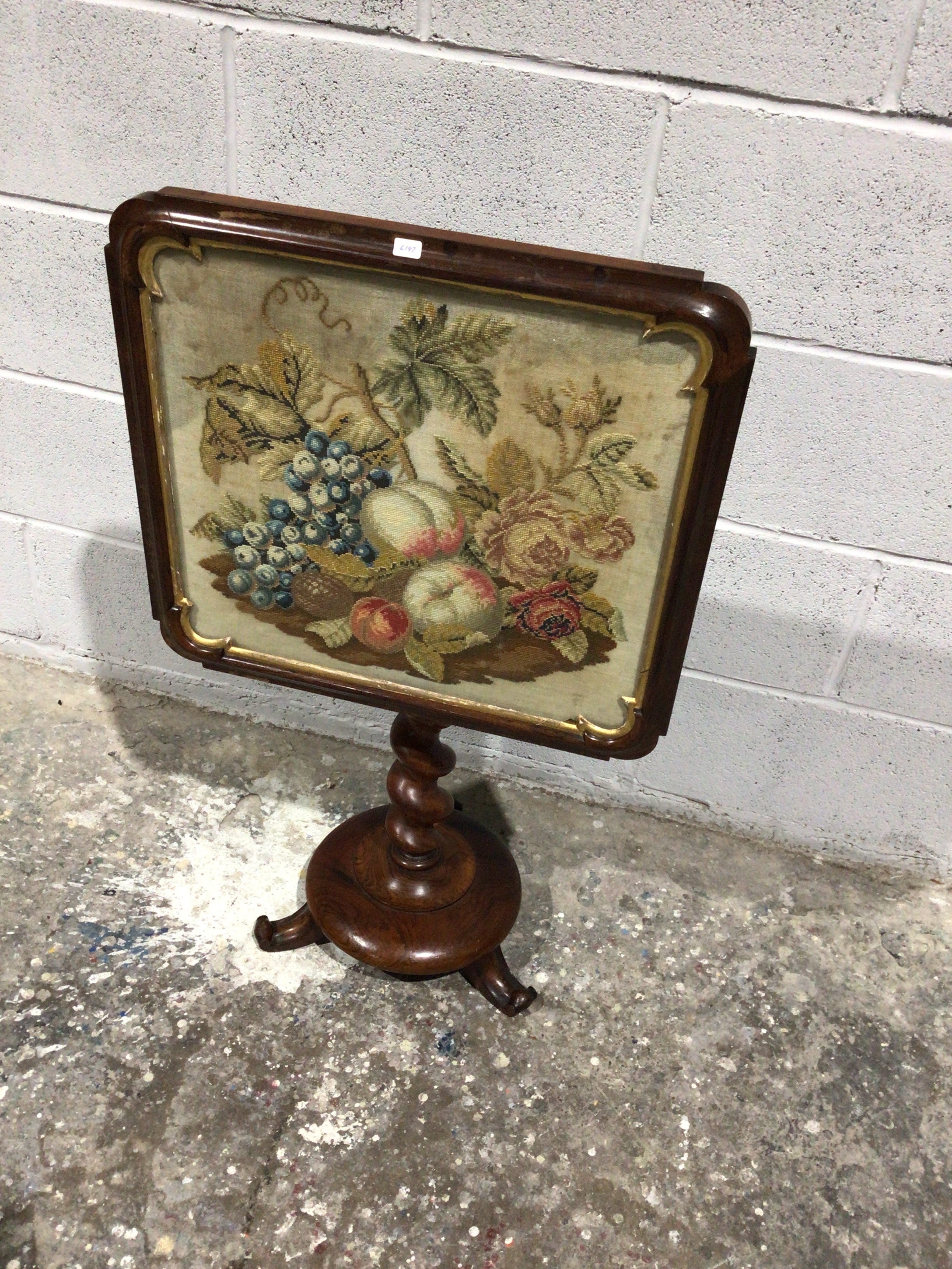 Victorian Mahogany Flip Top Pole Fire Screen with Needlepoint Panel