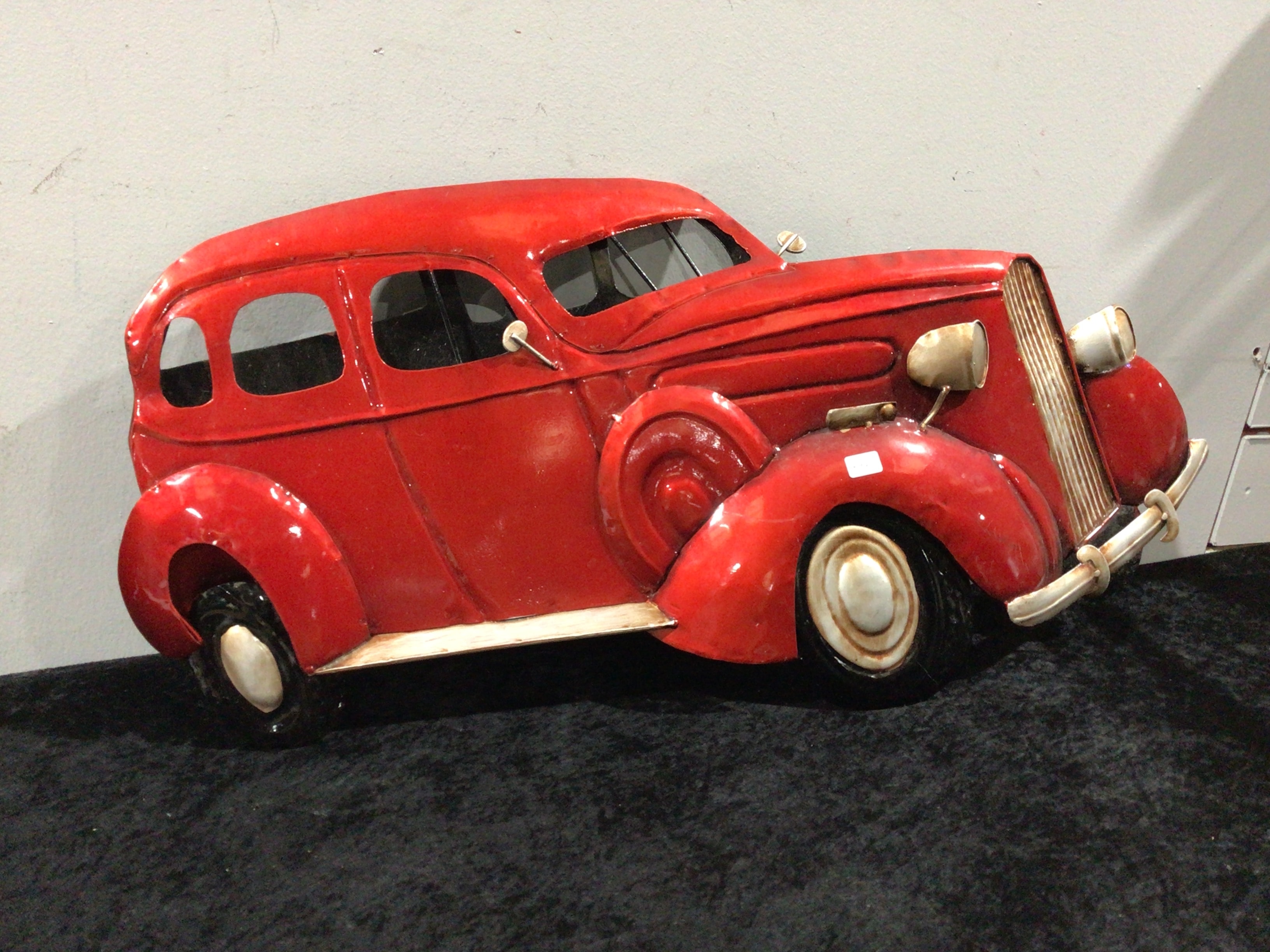 A Modern Three-Dimensional Metal Wall Plaque Depicting a 1930s Style Classic Car