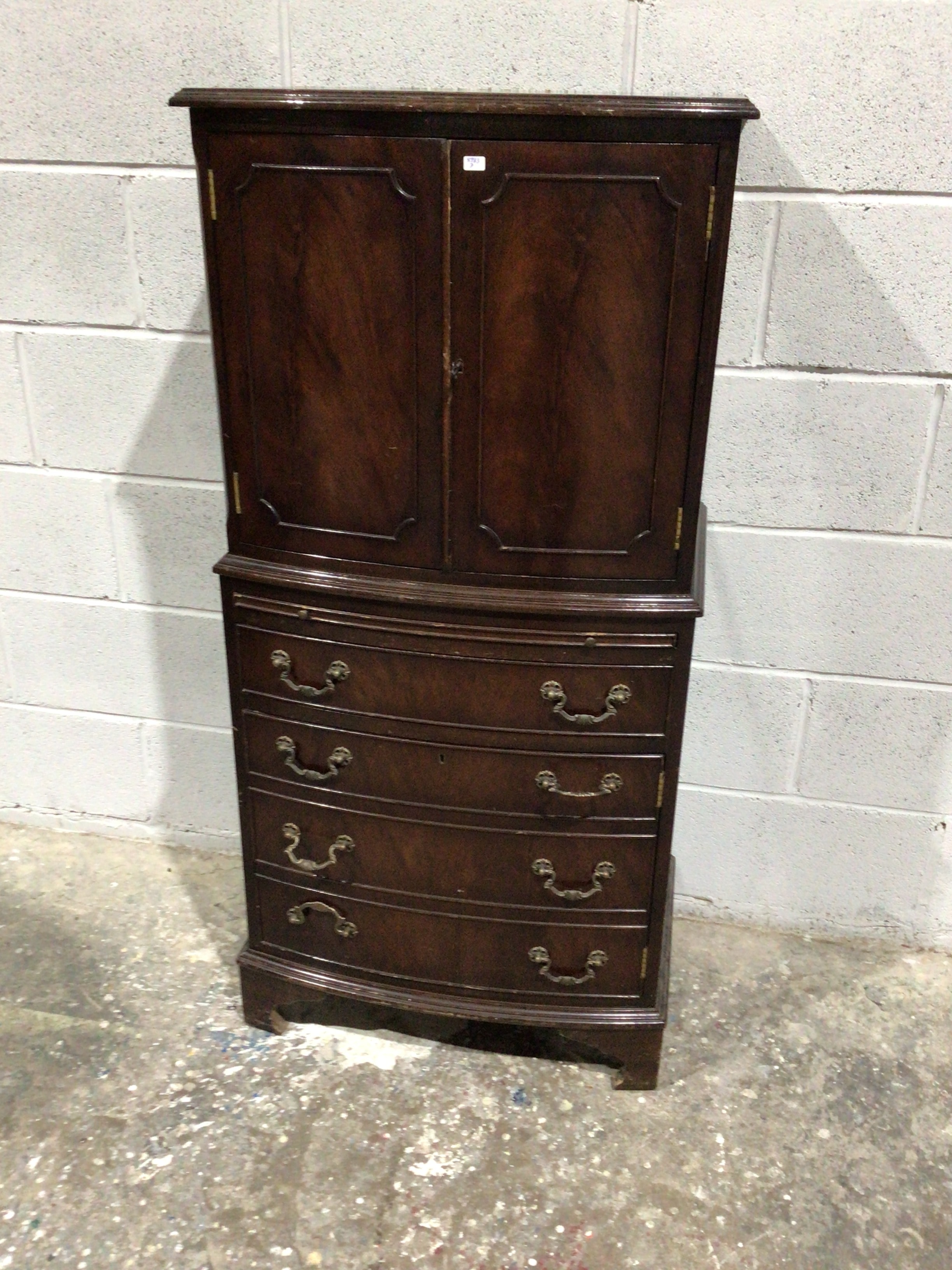 A Georgian Style Mahogany Bow-Front Cocktail Cabinet on Chest