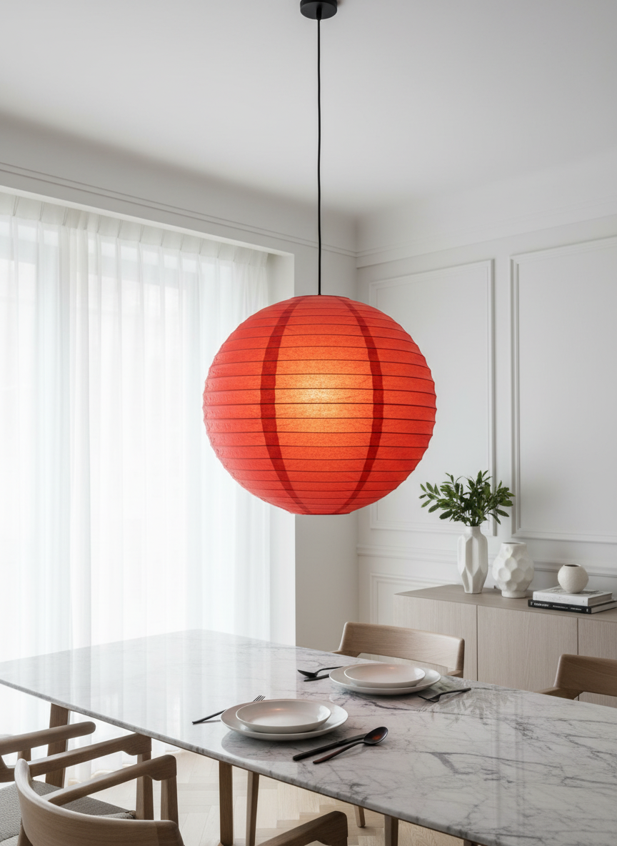A Group of 50 Red Round Paper Lanterns, 14 Inch