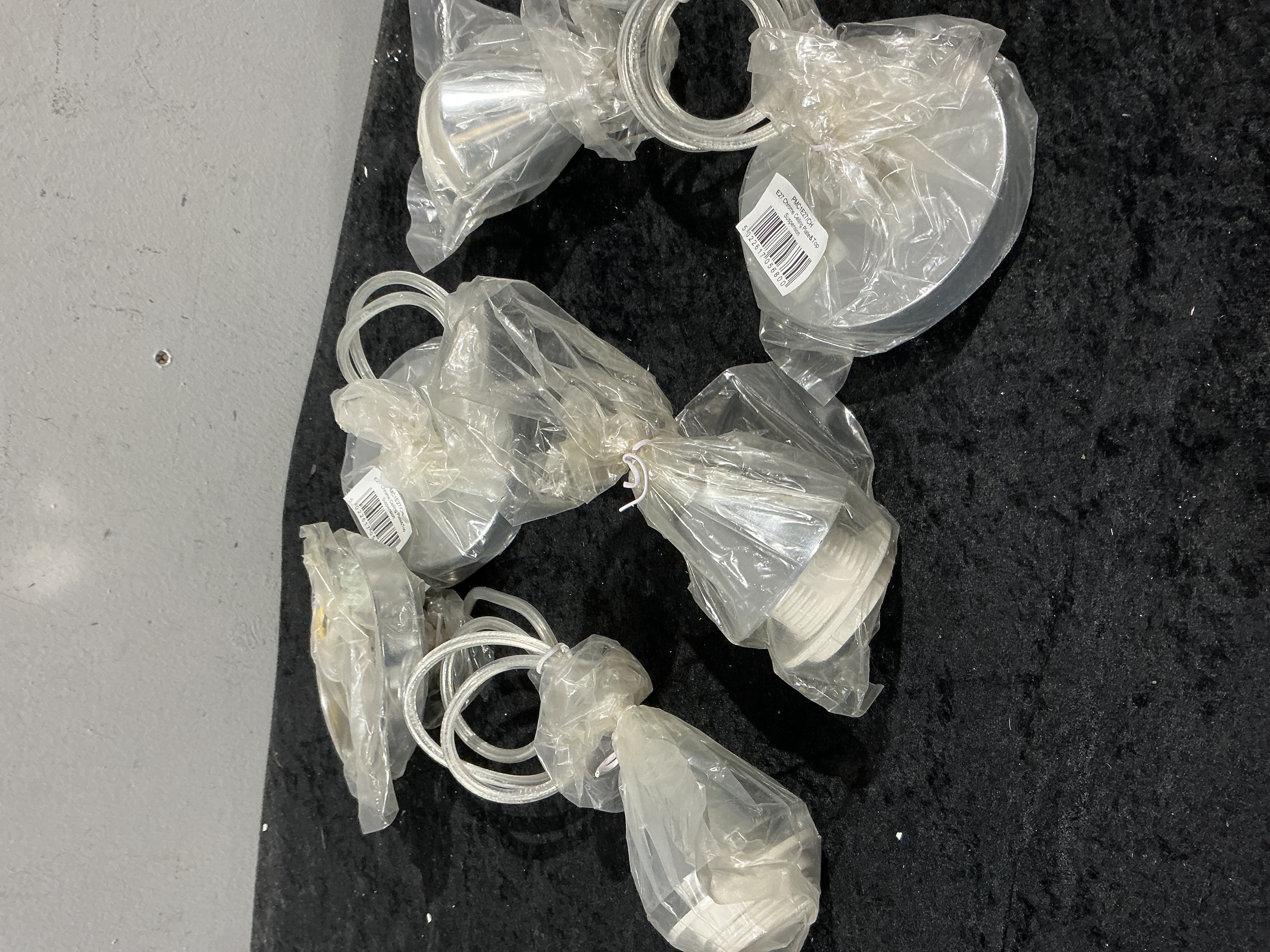 A Collection of 30 E27 Chrome Ceiling Plate/Top Suspension Components