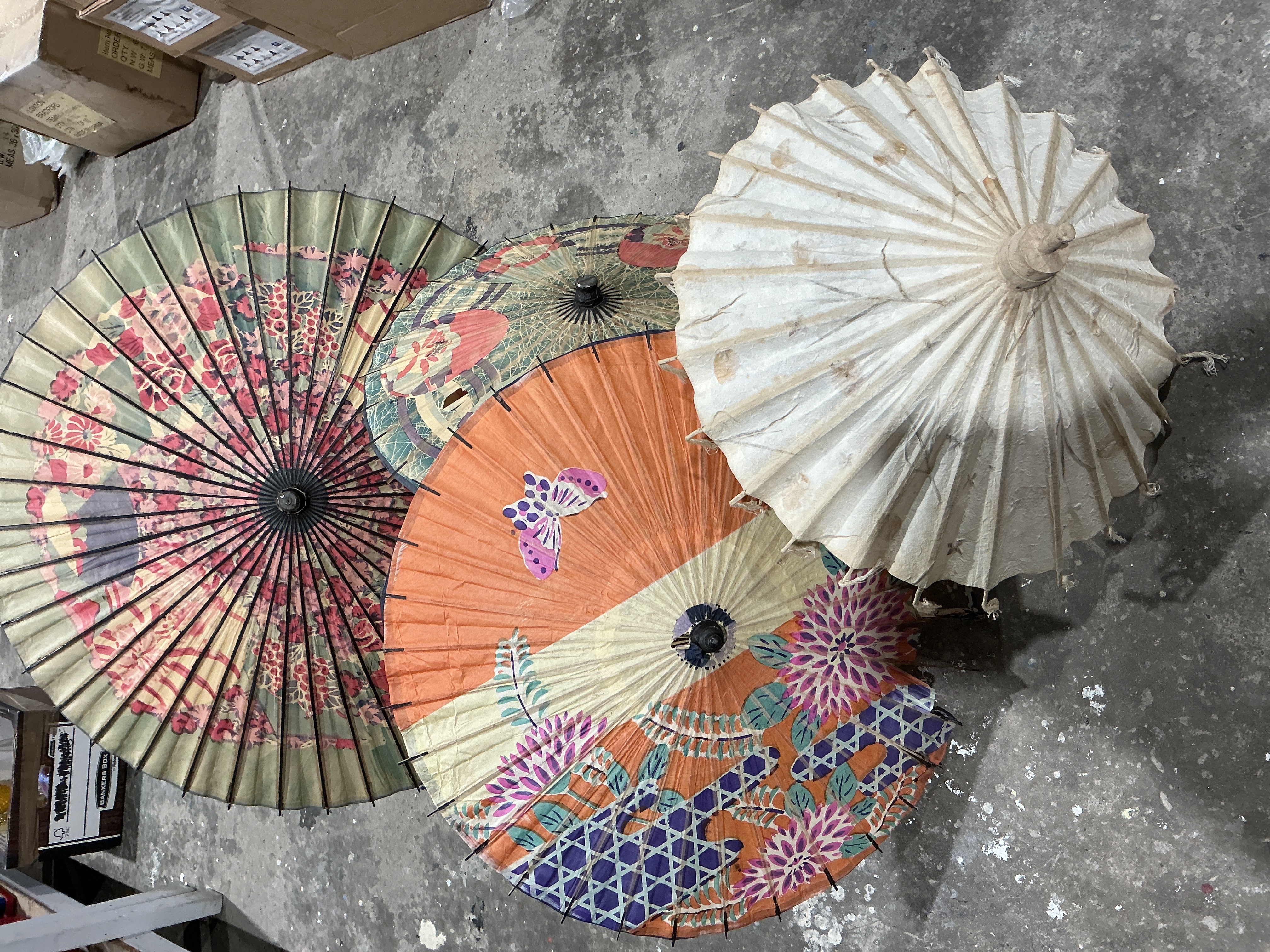 A Collection of 4 Vintage East Asian Hand-Painted Oil-Paper Parasols