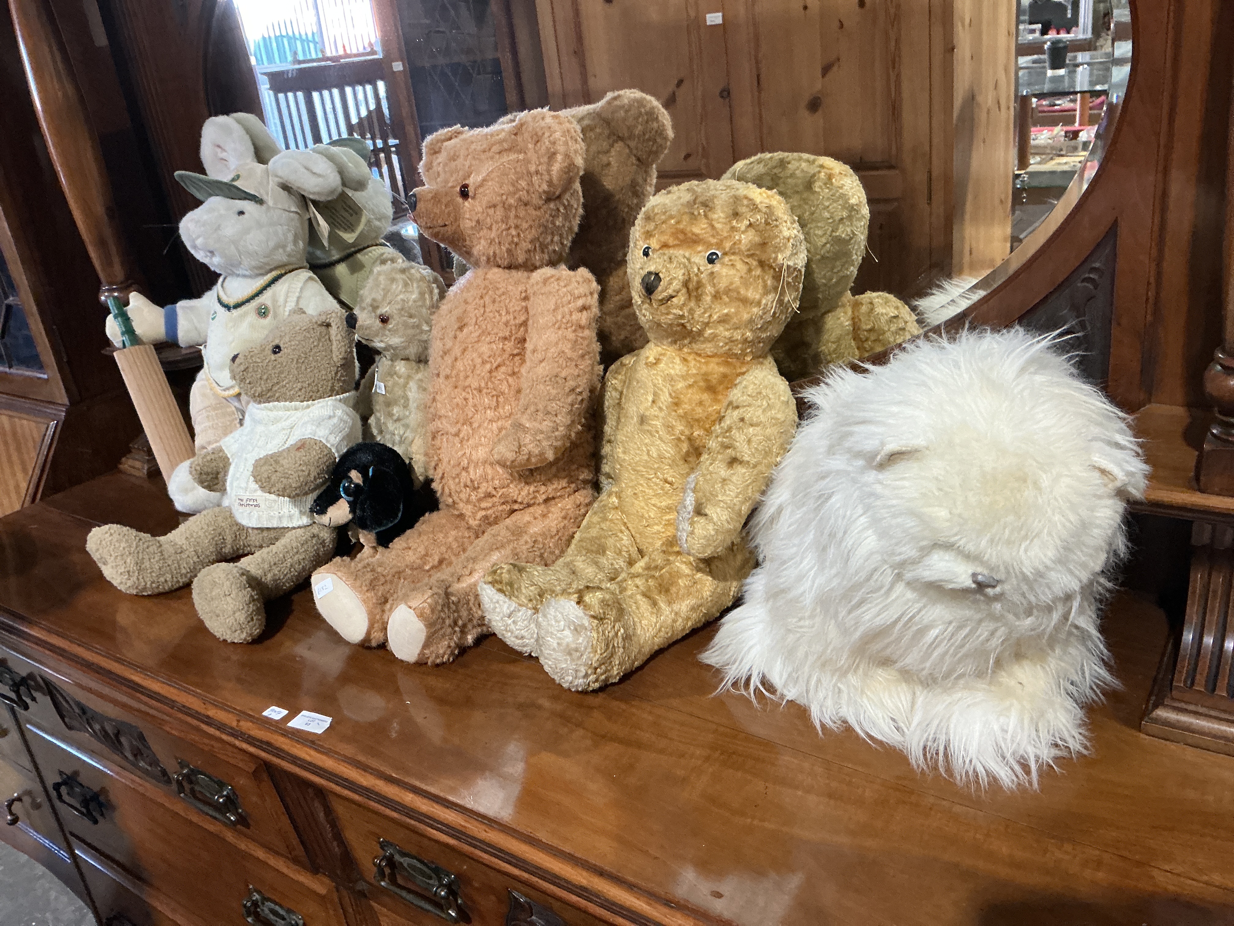 A Collection of Nine Assorted Plush Toys Including Commonwealth Sheep Dog and Vintage Teddy Bears
