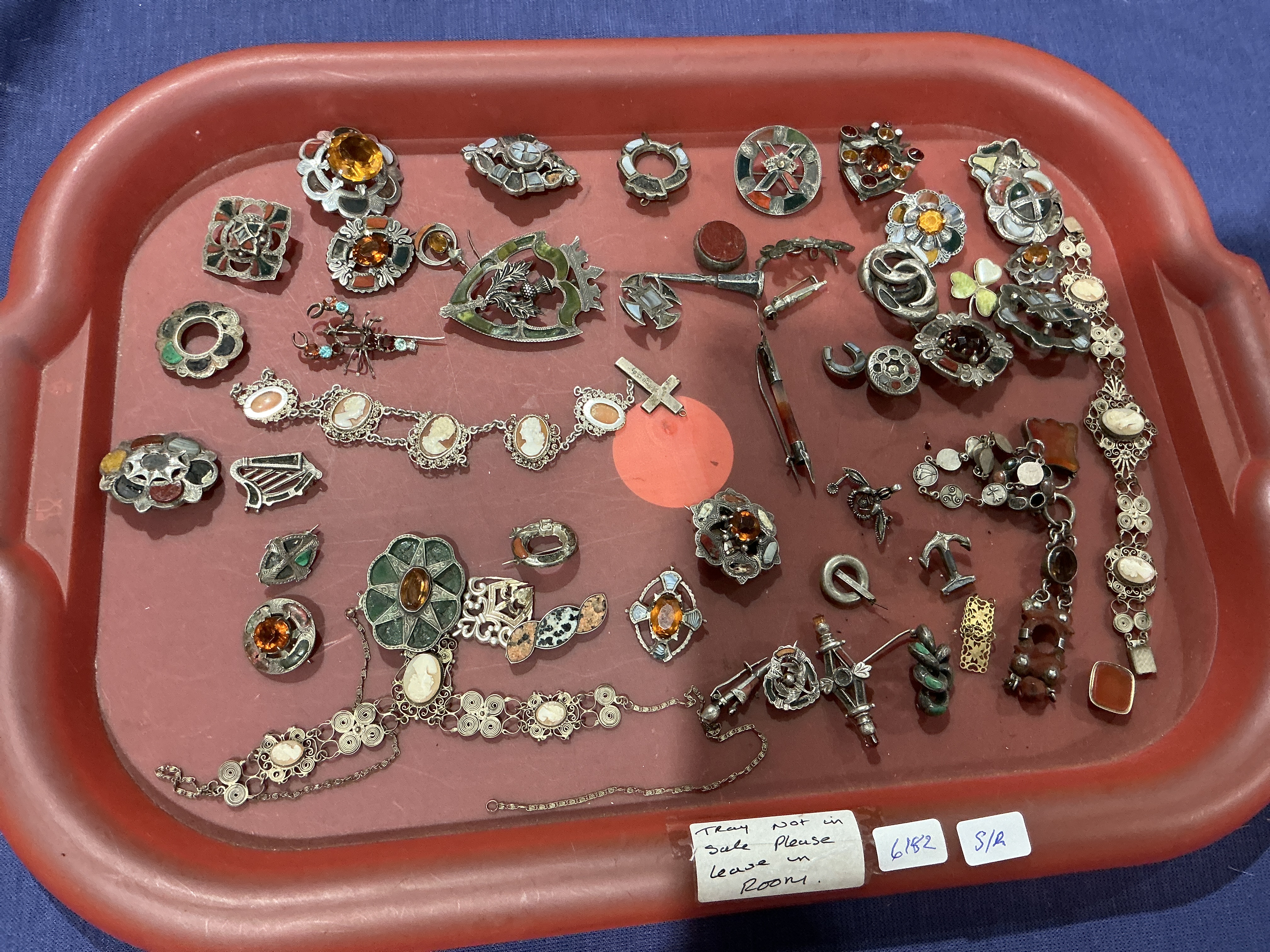 A Collection of Silver Celtic and Scottish Jewelry Requiring Repair