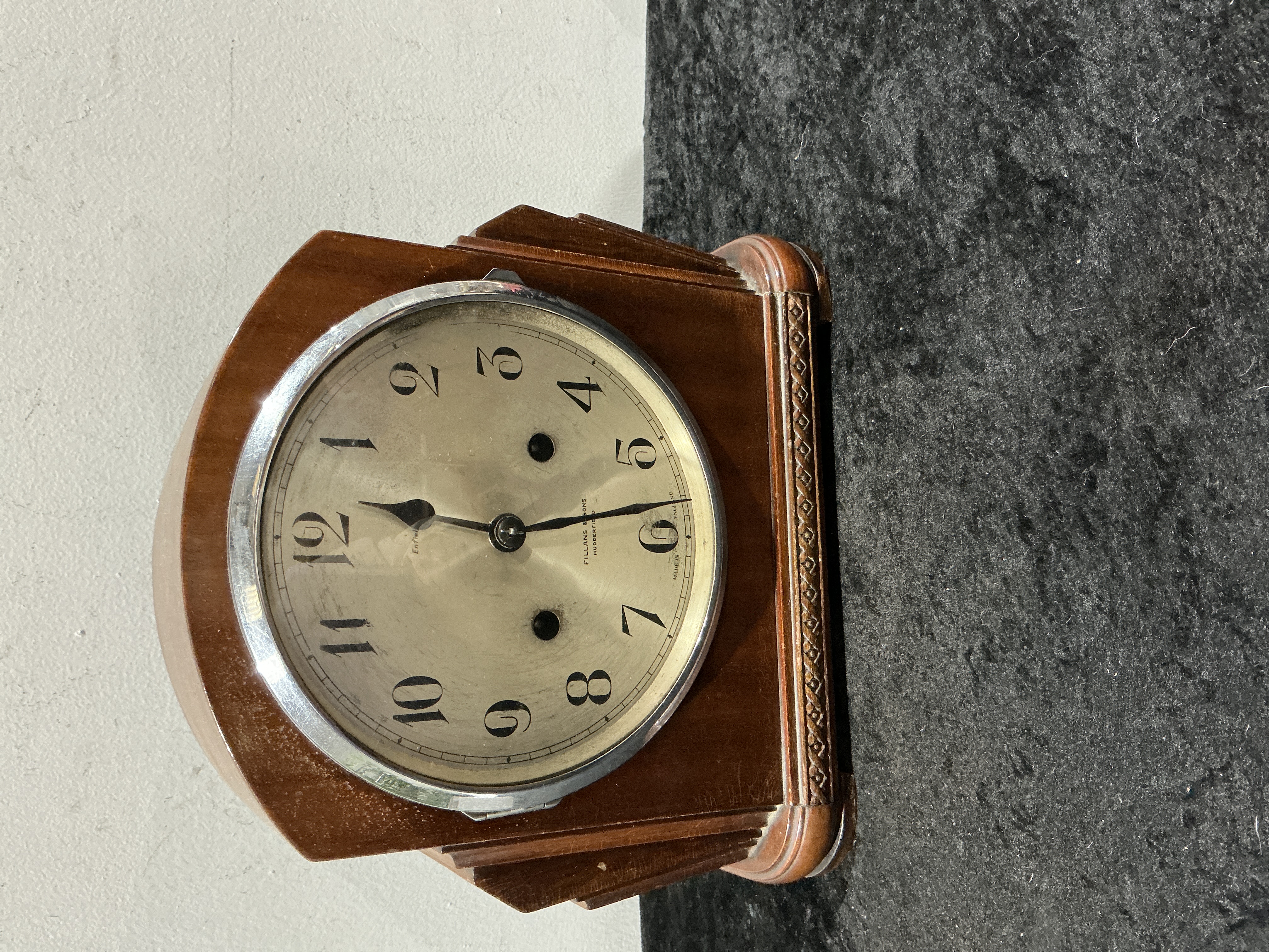 Enfield Art Deco Mahogany Veneered Mantel Clock for Fillans and Sons Huddersfield