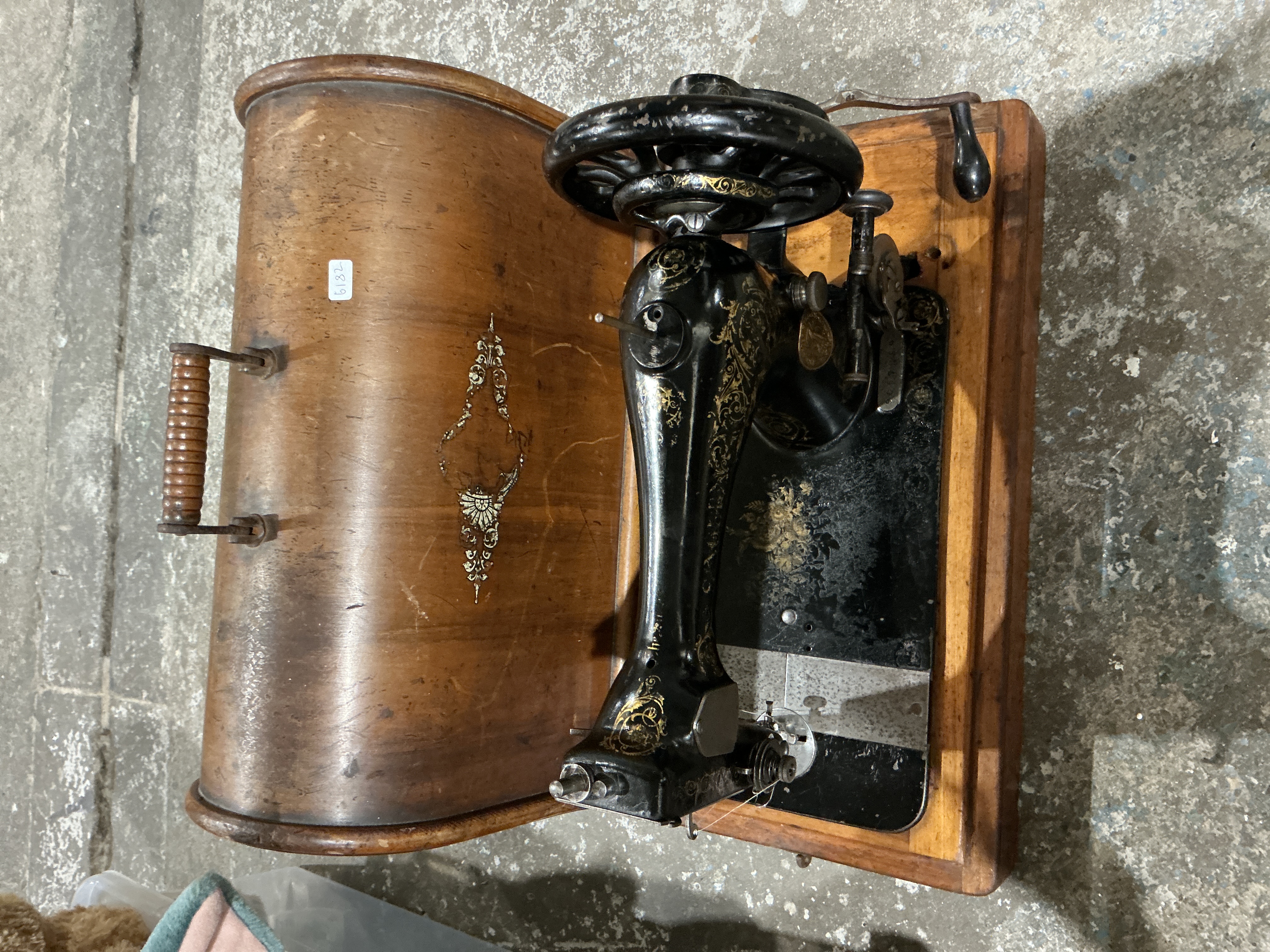 Singer Hand-Crank Sewing Machine with Bentwood Case