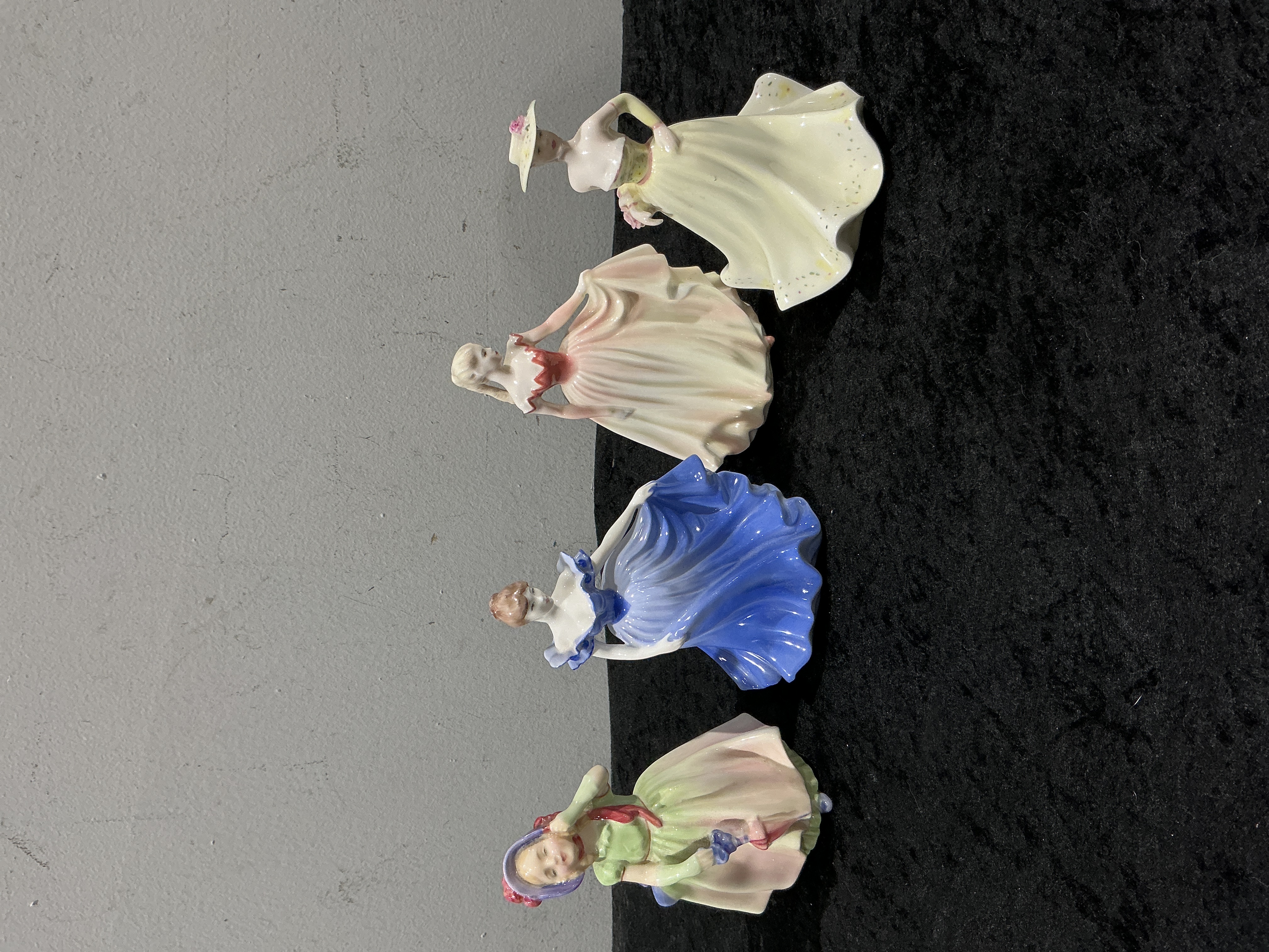 A Collection of Four English Polychrome Glazed Porcelain Lady Figurines including Coalport and Loretta