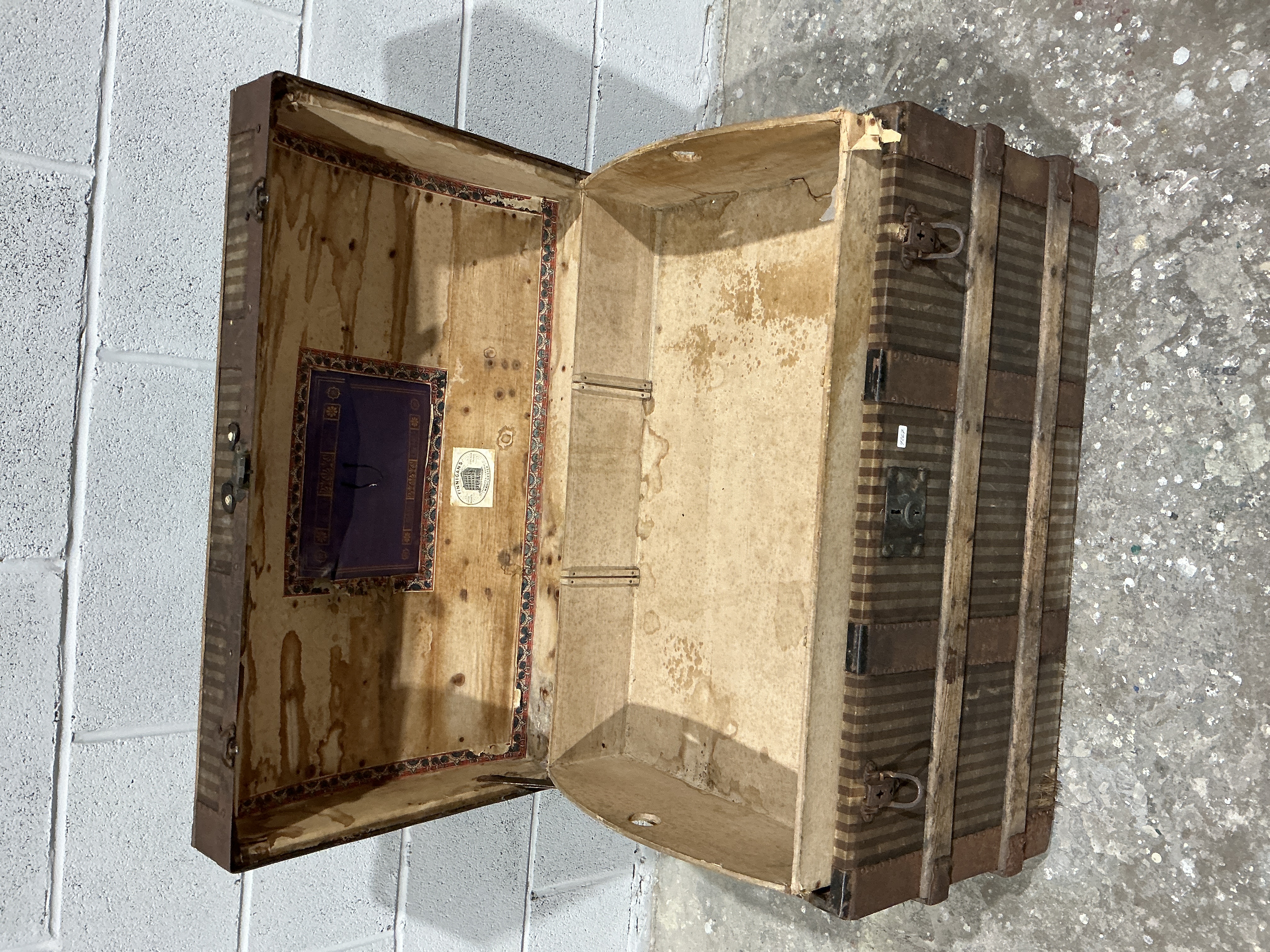 A Finnigan's Striped Dome-Top Steamer Trunk