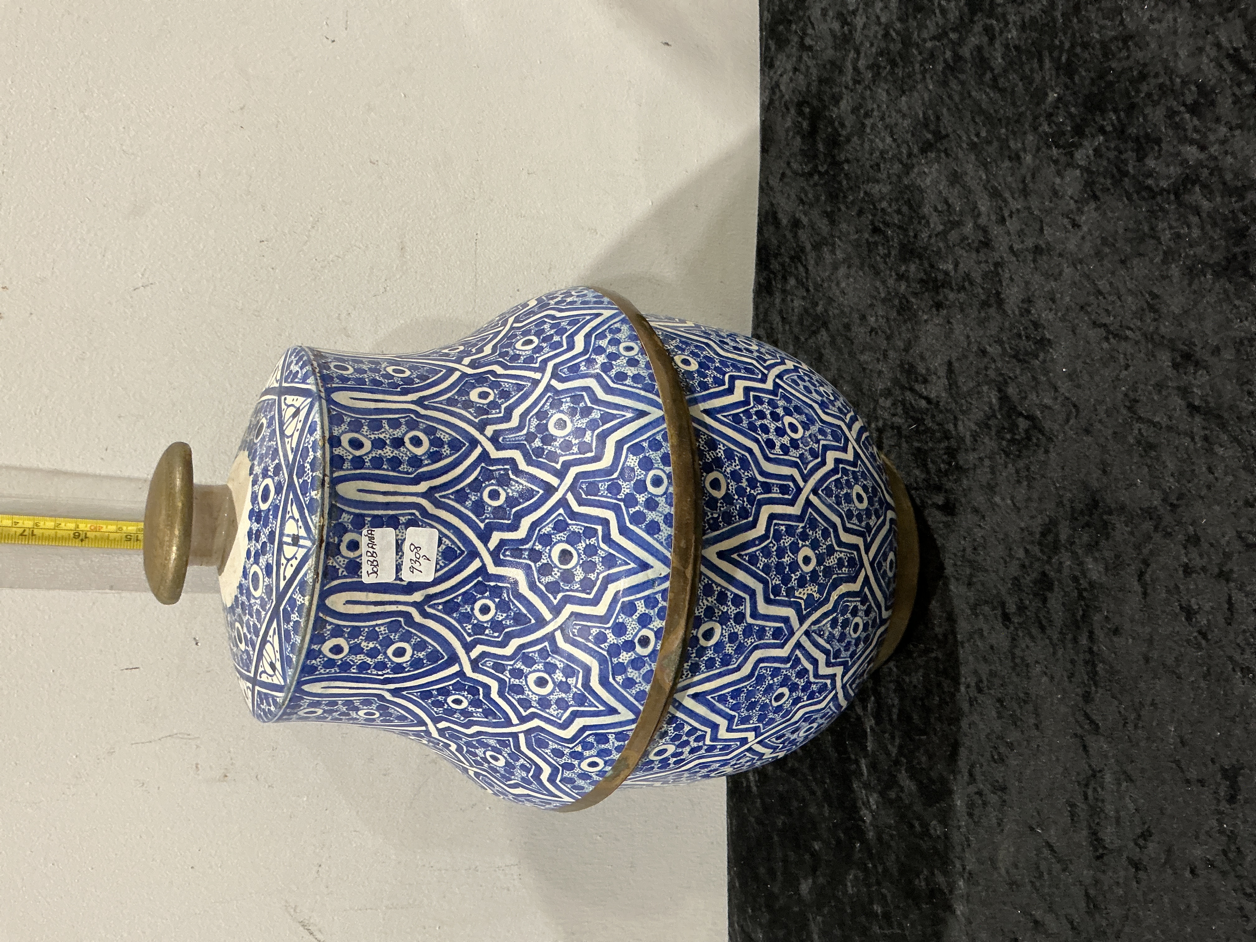 A Large Moroccan Fes Cobalt Blue and White Tin-Glazed Ceramic Jobbannah Lidded Vessel