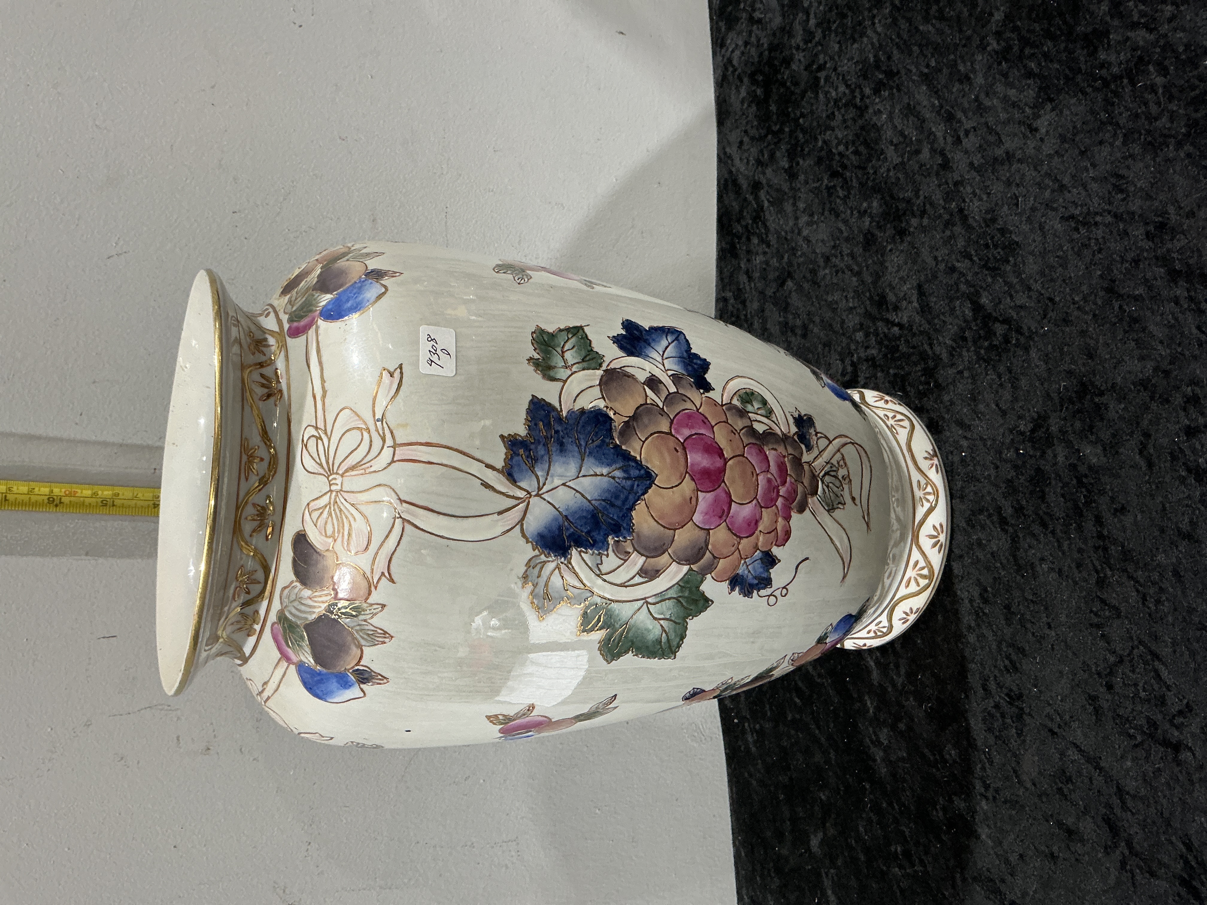 A Large 20th Century Japanese Style Porcelain Ovoid Vase with Fruit and Ribbon Decoration