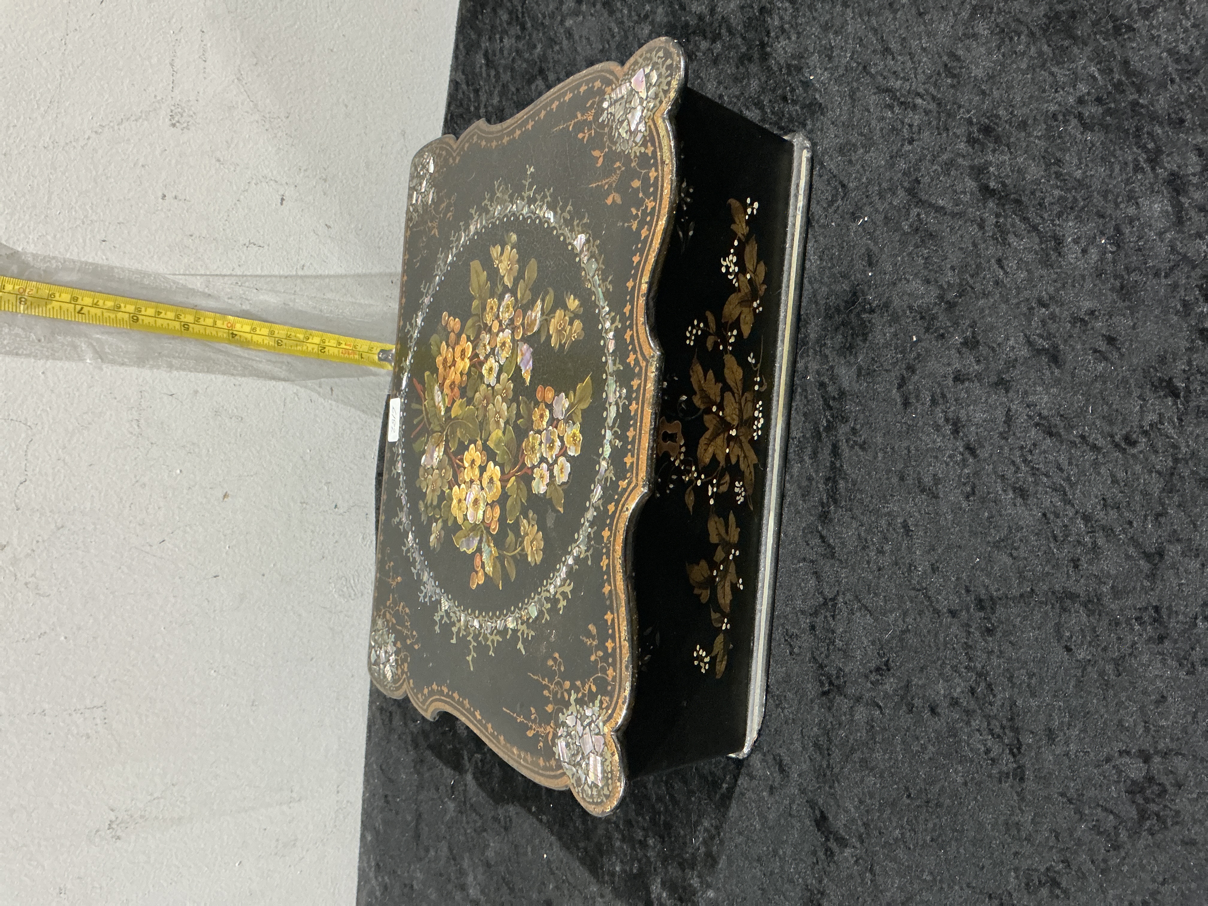 A Victorian Black Lacquered Papier-Mâché and Mother-of-Pearl Inlaid Writing Slope