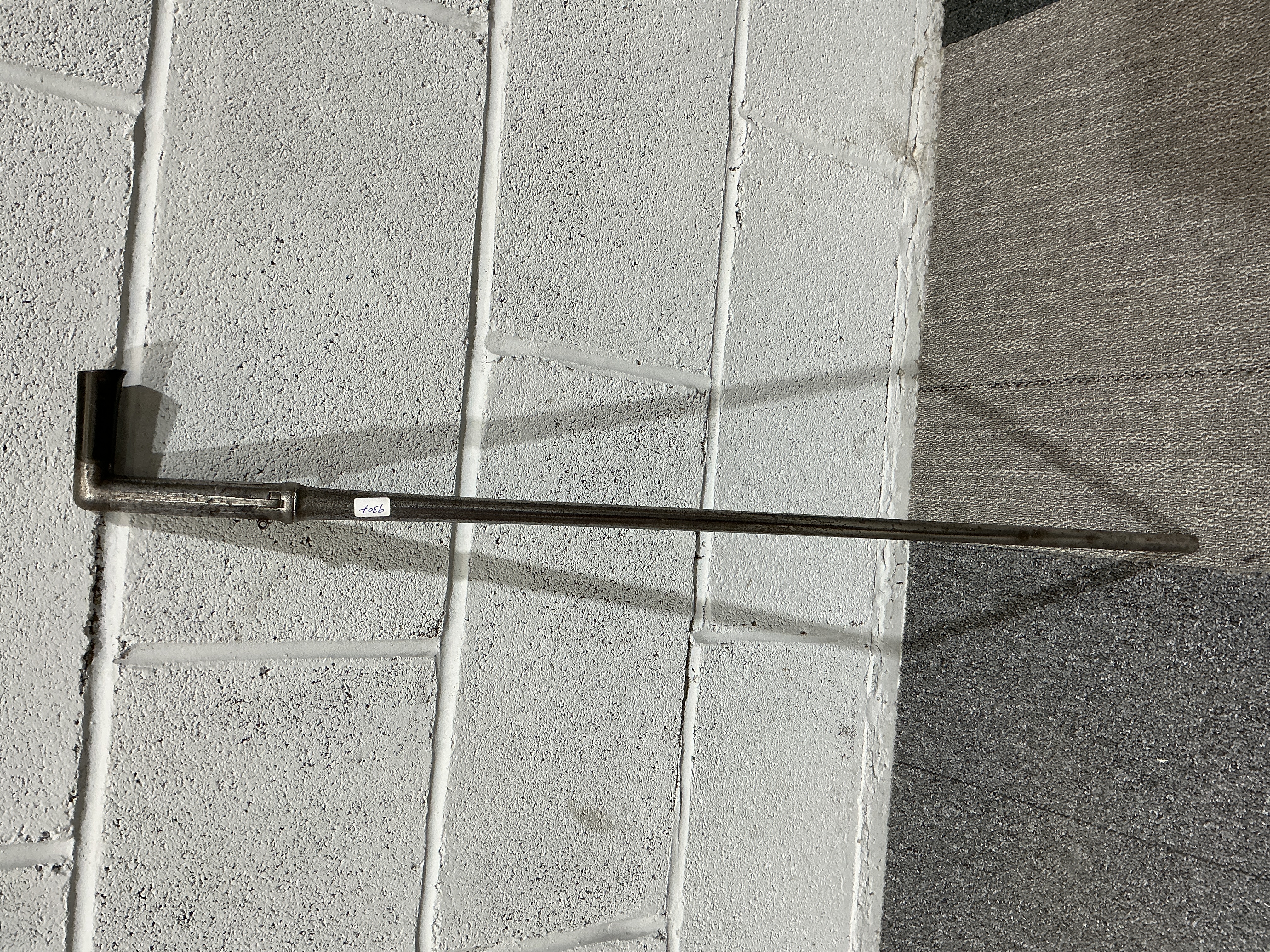 An antique European system cane gun, likely of Belgian or German manufacture, dating to the late 19th or early 20th century. The L-shaped handle consists of a steel frame fitted with a polished grip of black ebonite or horn. The tapered steel shaft serves as the barrel for the firearm, terminating in a hollow muzzle. This functional system cane is designed with a pull-ring trigger on the side of the upper shaft and a sliding cocking and loading mechanism located just below the handle elbow. The upper shaft is stamped with a small proof mark depicting a crown over a circular cartouche containing stylized letters or a heraldic device. Such pieces were typically chambered for small-calibre rimfire or pinfire ammunition. Length approx. 90 cm.