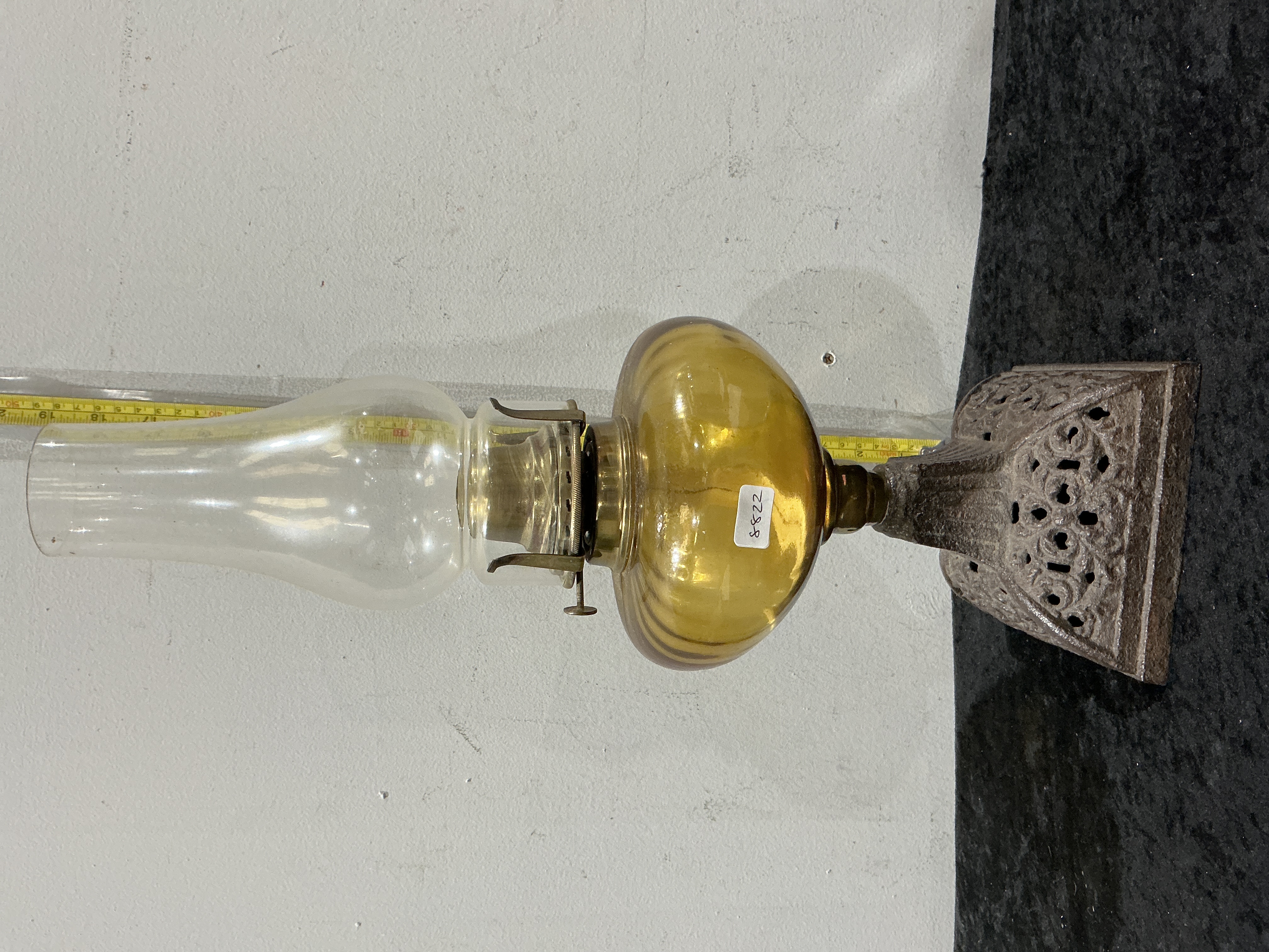 Eagle, Ribbed Amber Pattern, Victorian Kerosene Oil Lamp, Cast Iron and Glass