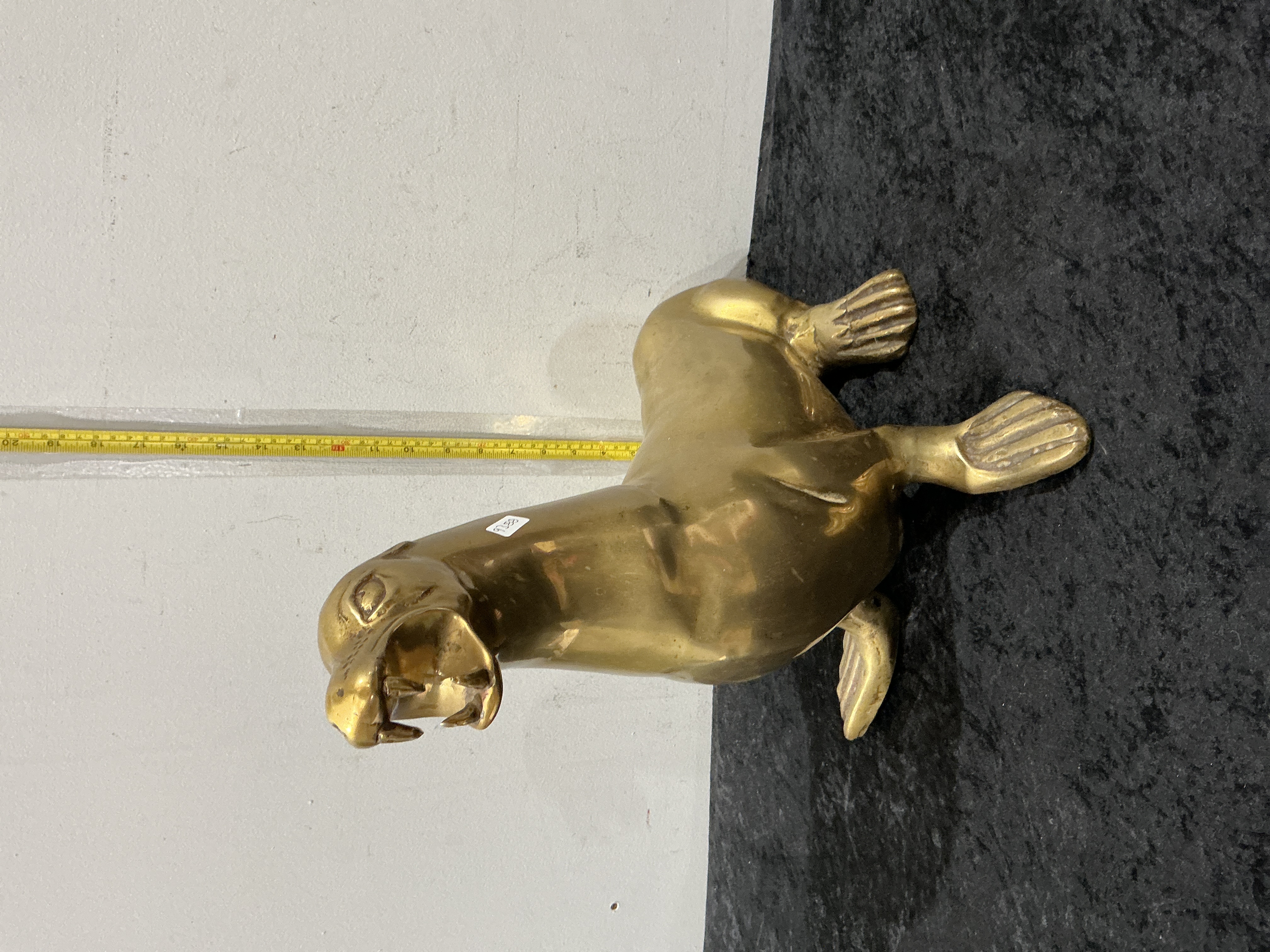 A Large Mid-Century Modern Cast Brass Sea Lion Sculpture, circa 1970