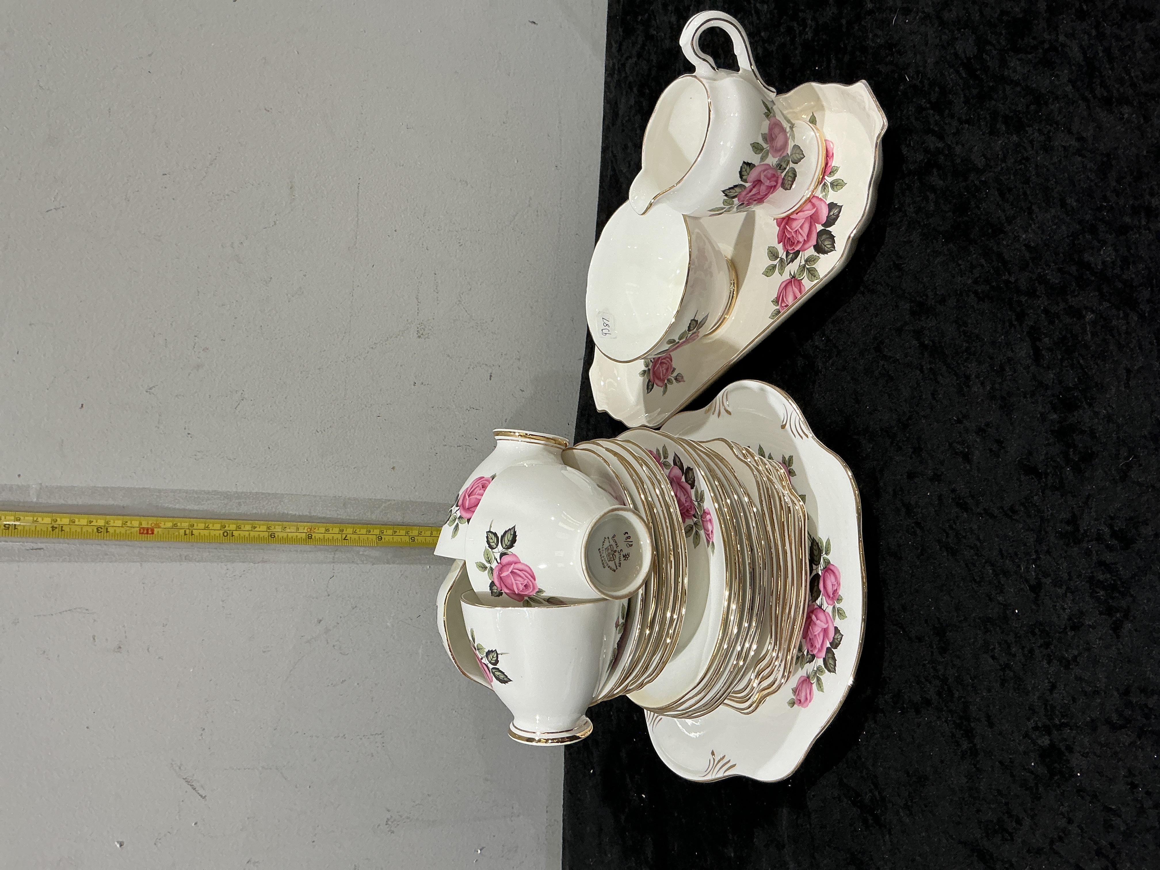 A Royal Stuart Spencer Stevenson Bone China Tea Service in a Pink Rose Pattern
