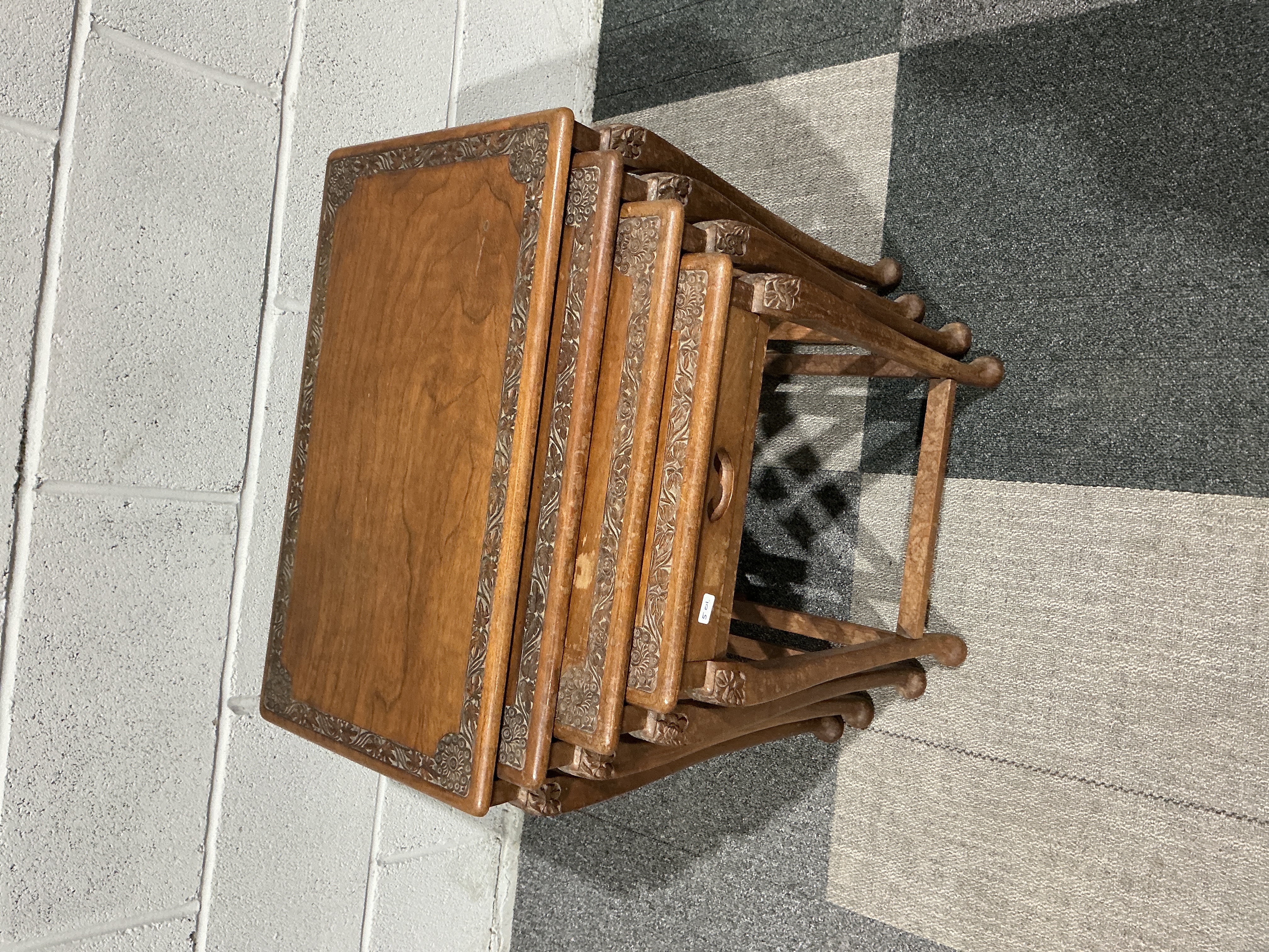 Vintage Anglo-Indian Style Hand-Carved Rosewood Nest of Four Tables