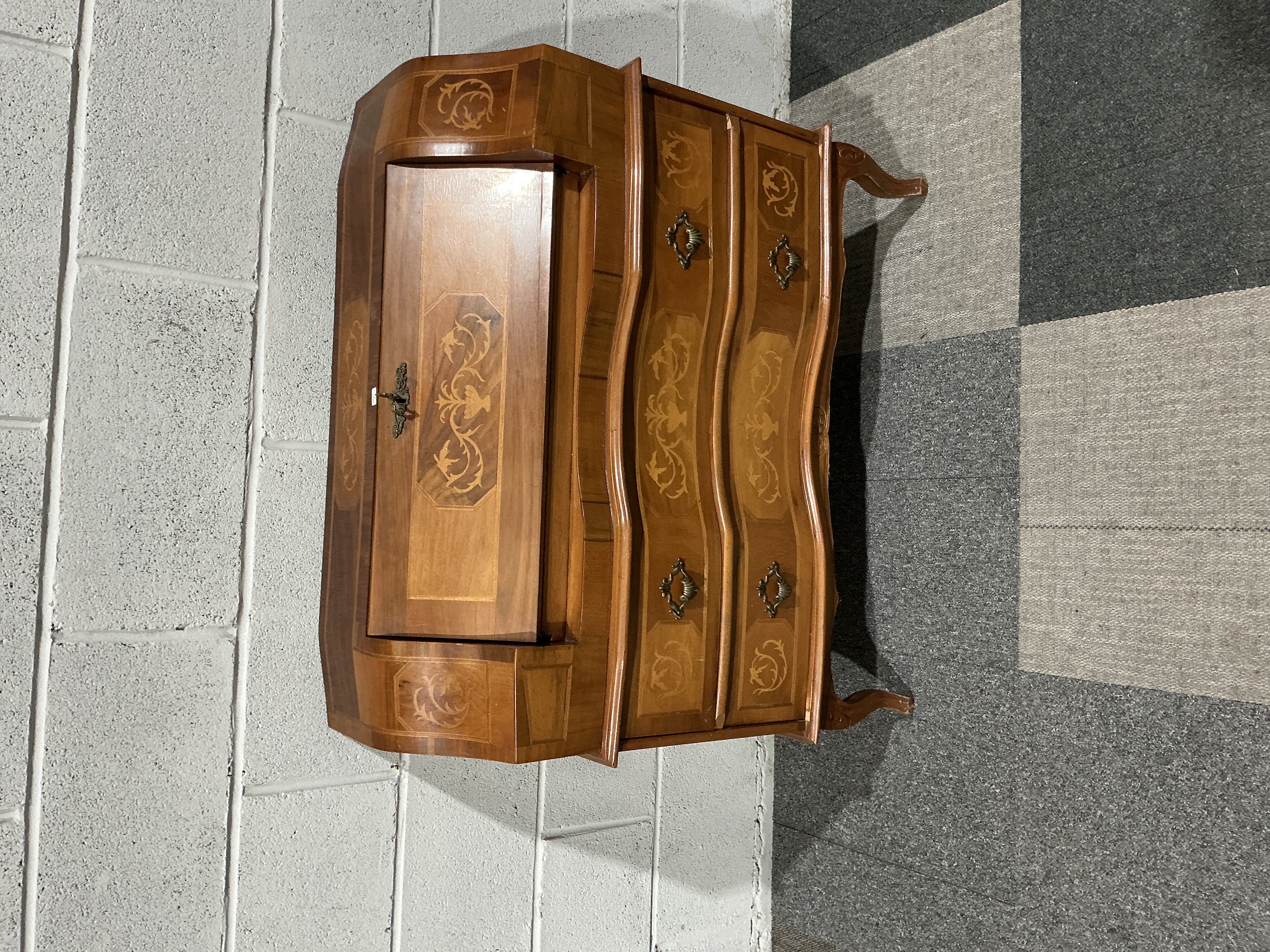 A 20th Century Continental Style Marquetry Inlaid Walnut Bombe Bureau