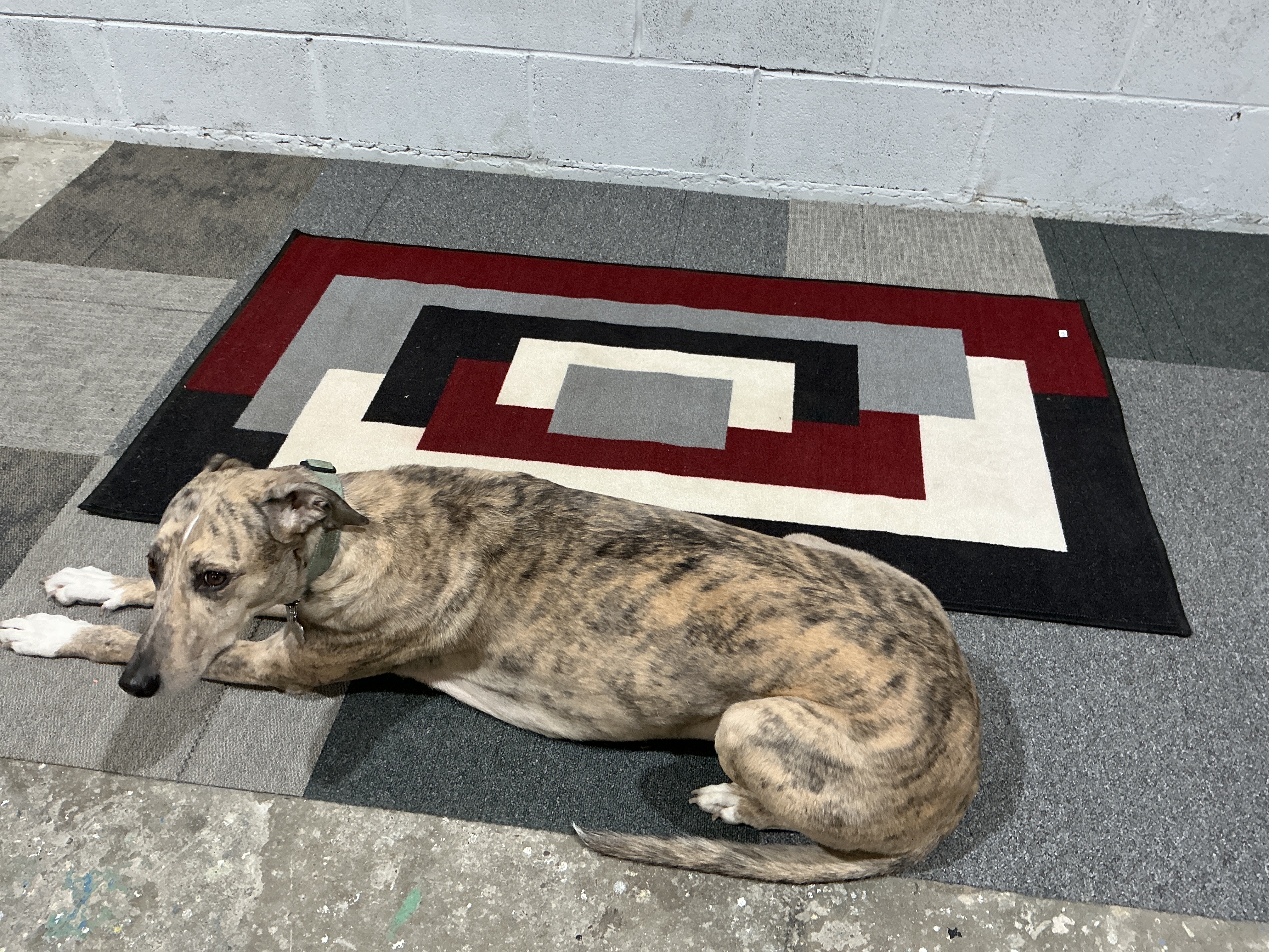 A contemporary machine-made rug featuring the Illusion pattern in a red and black colourway. The design displays a 3D-effect geometric composition of concentric and overlapping rectangles in shades of red, black, light grey, and cream. The piece is constructed with a 100% polyamide pile and a textured synthetic backing. The reverse retains a white adhesive manufacturer’s label printed with the model name Illusion, the colourway Red-Black, and material composition.