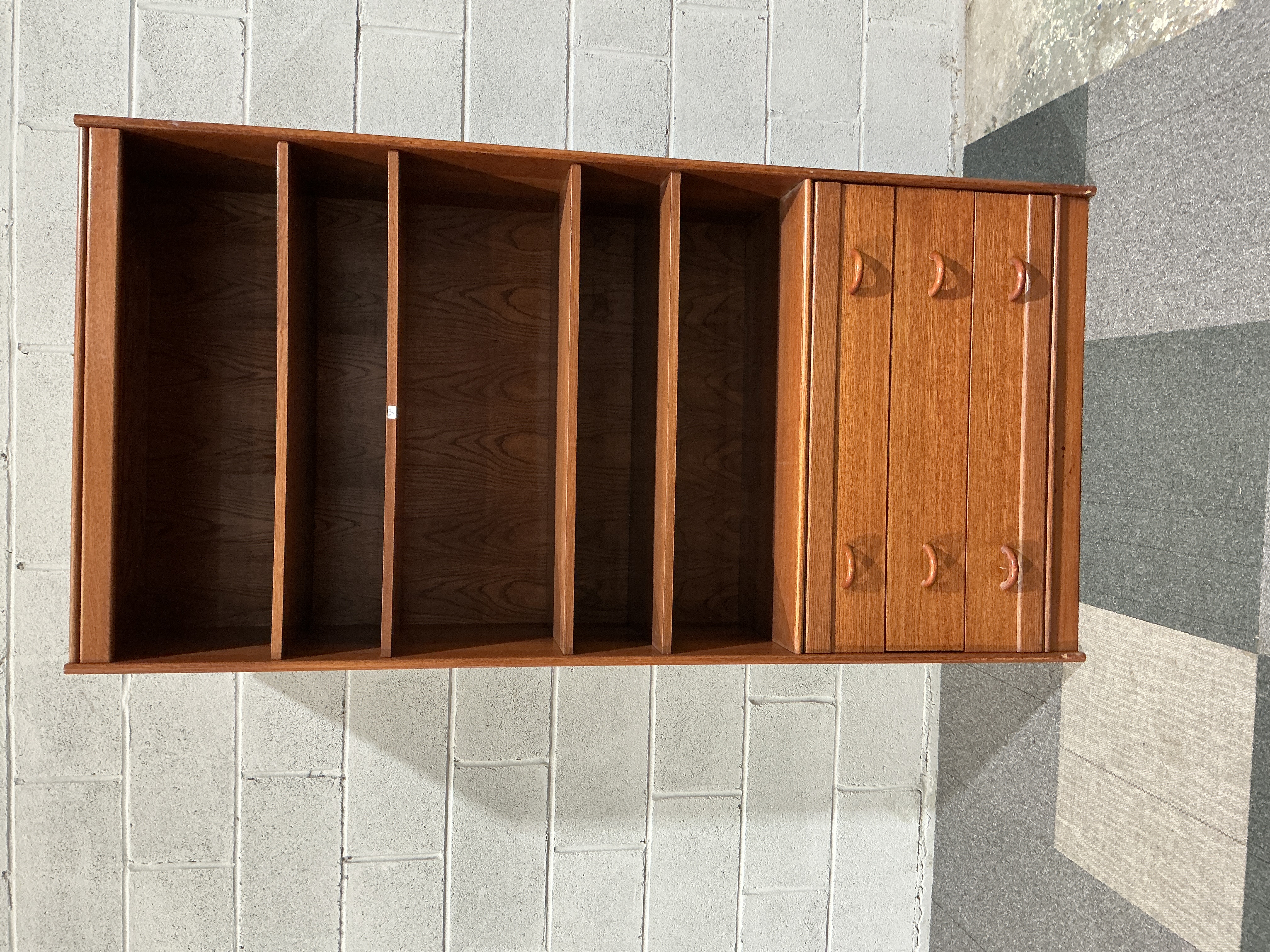 Dimensions: Low, elongated proportions suitable for use as a sideboard-height bookcase or part of a modular wall system.