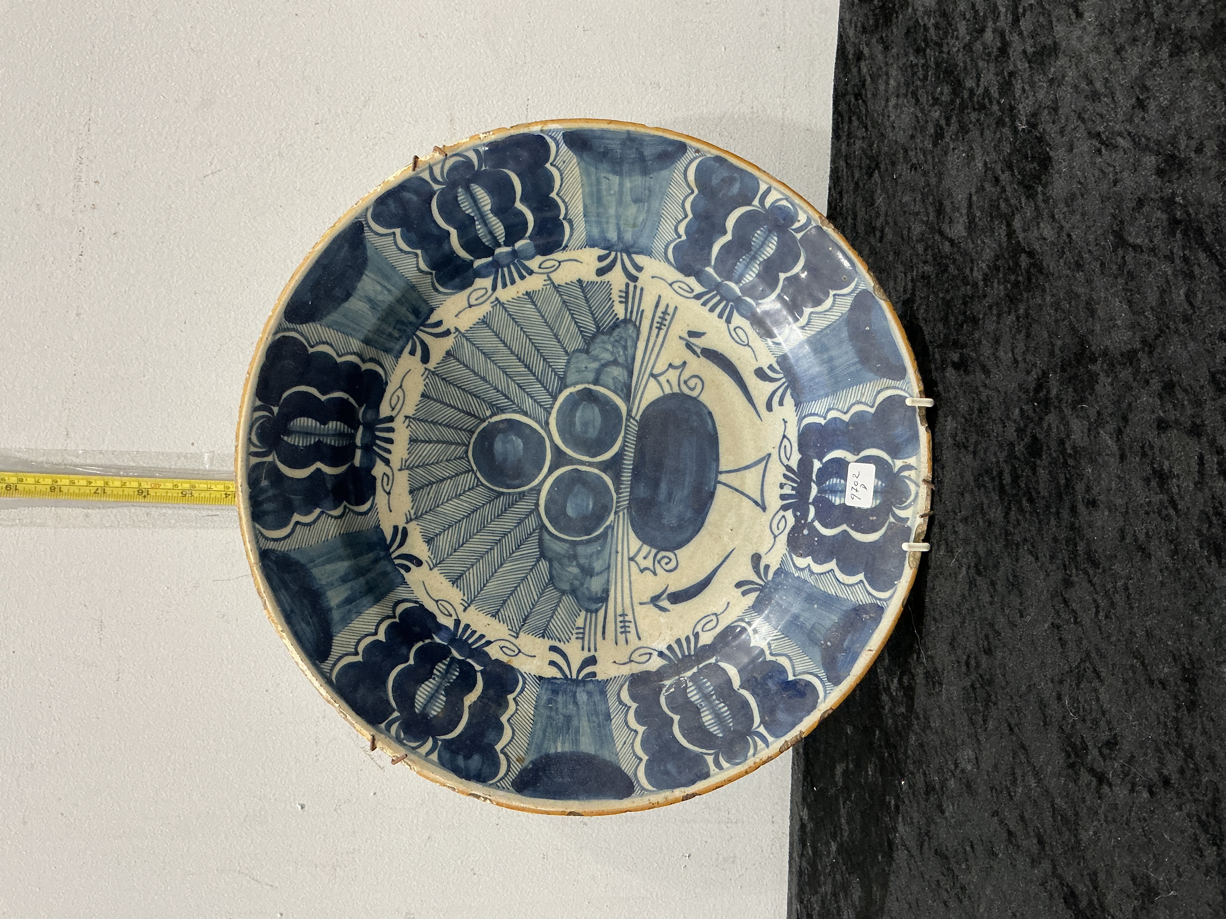 A Dutch Delftware Blue and White Peacock Pattern Charger