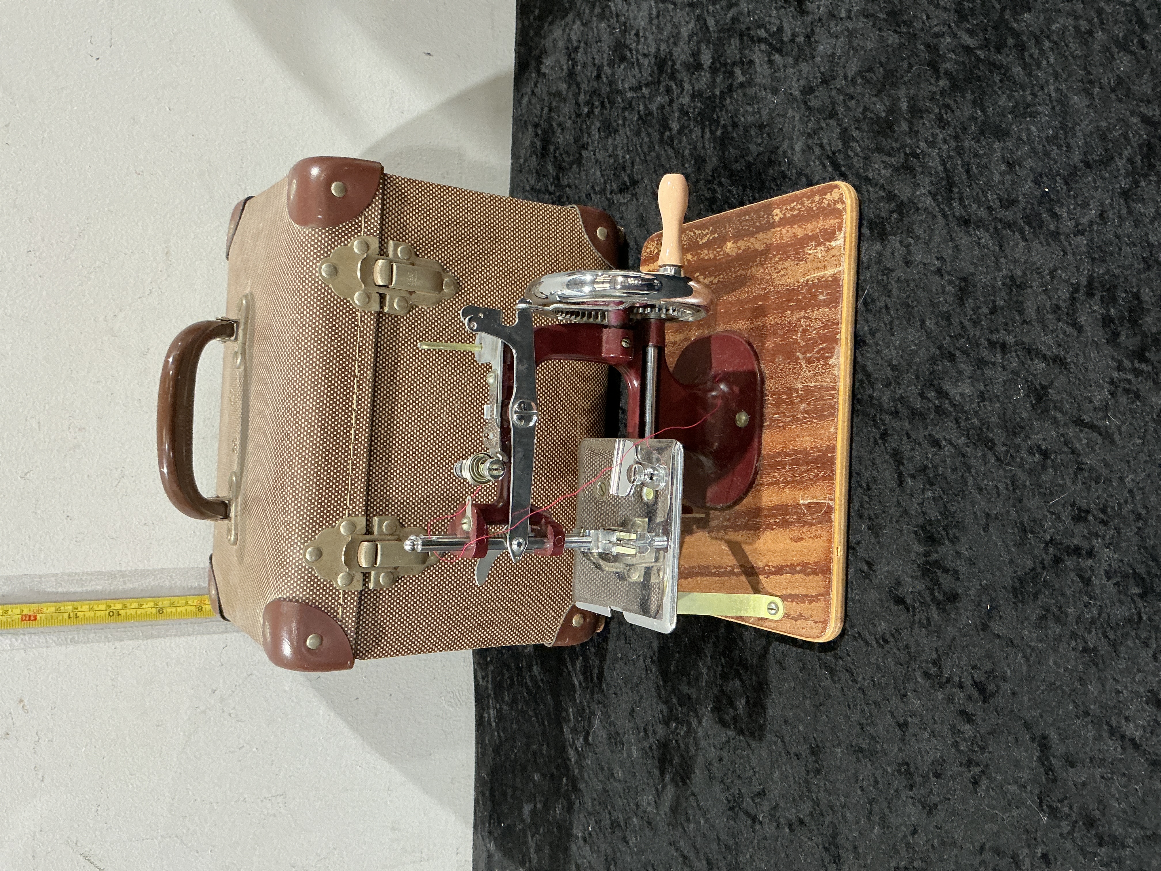 An Essex MK1 Miniature Hand-Cranked Sewing Machine with Carrying Case