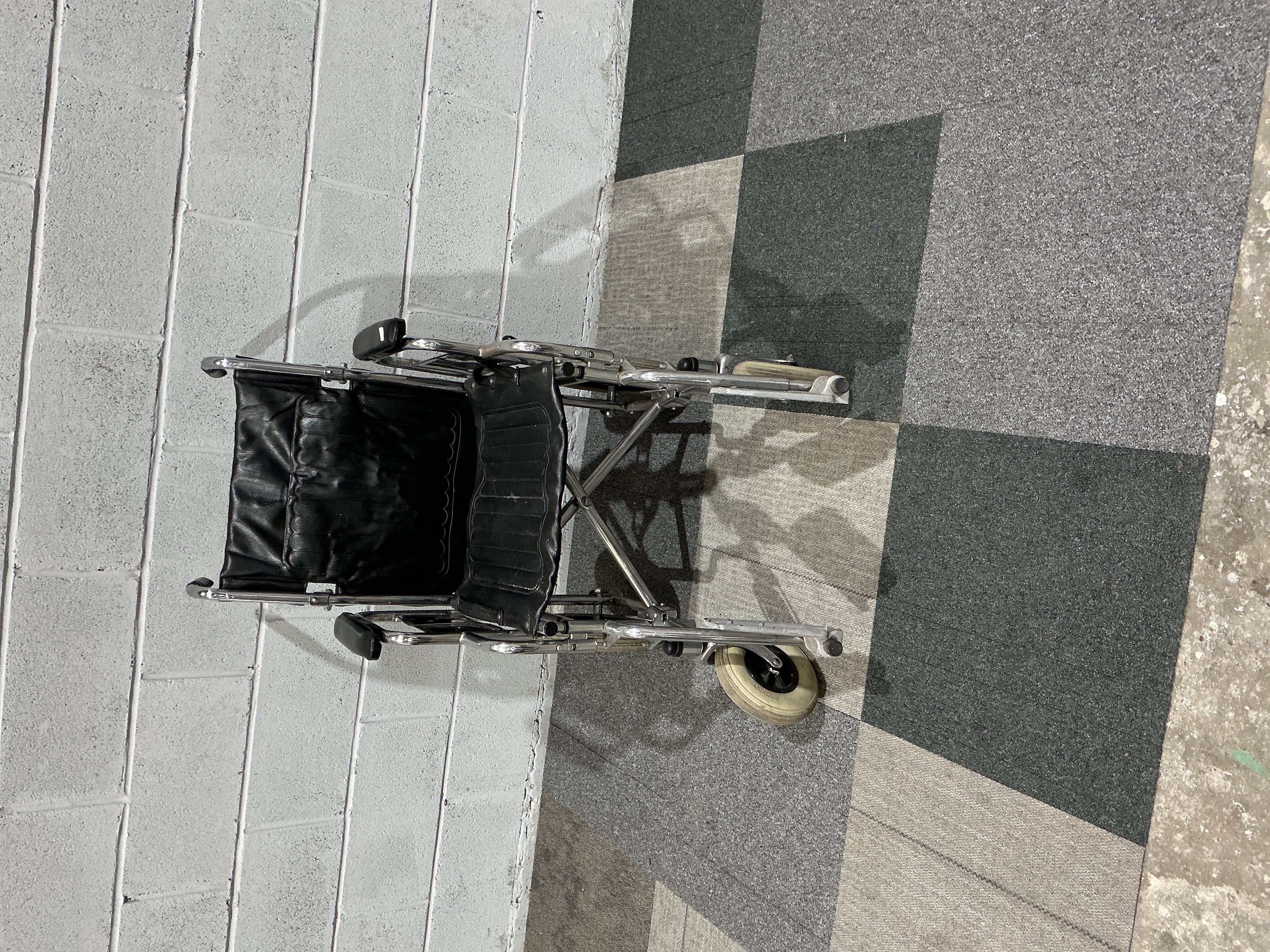 A Worldwide Mobility Chrome-Plated Folding Transit Wheelchair