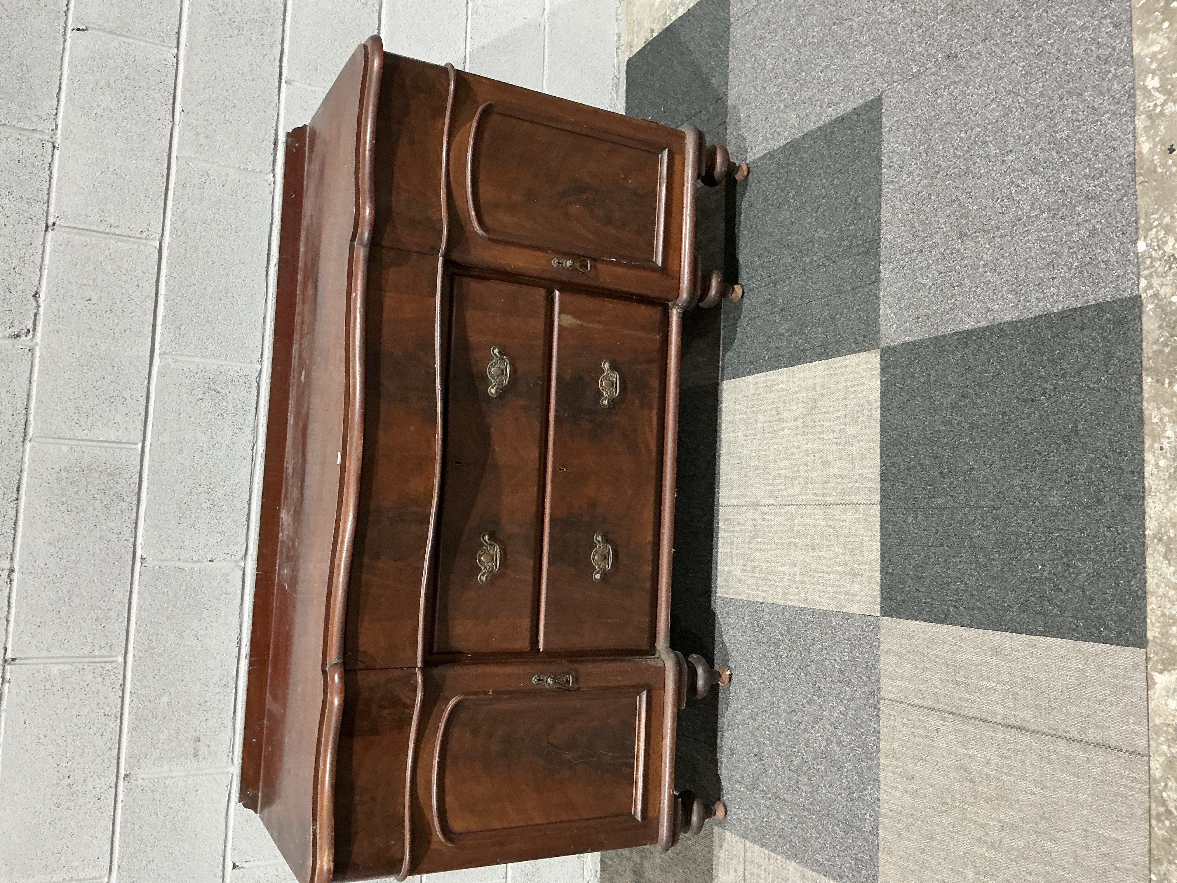 Victorian Style Mahogany Serpentine Sideboard with Flame Mahogany Veneers