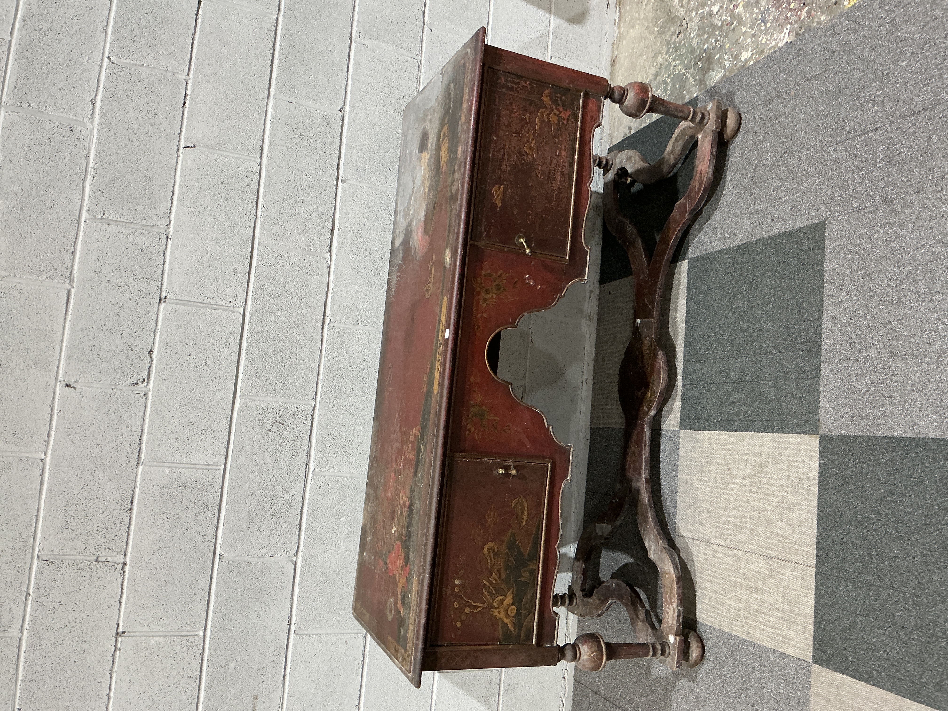 A Red Japanned Chinoiserie Lowboy in the William and Mary Style