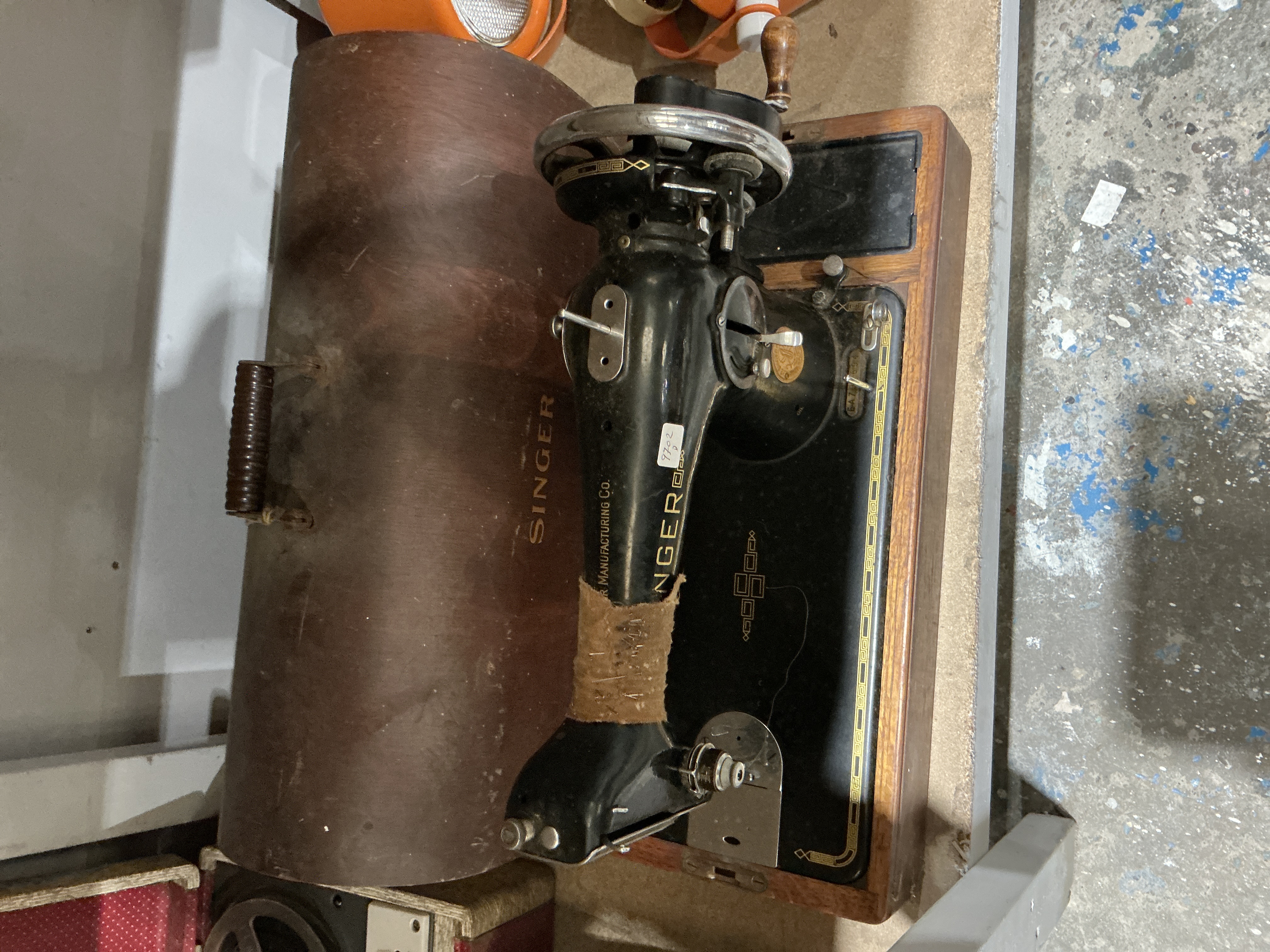 A Vintage Singer Hand-Crank Sewing Machine with Bentwood Case