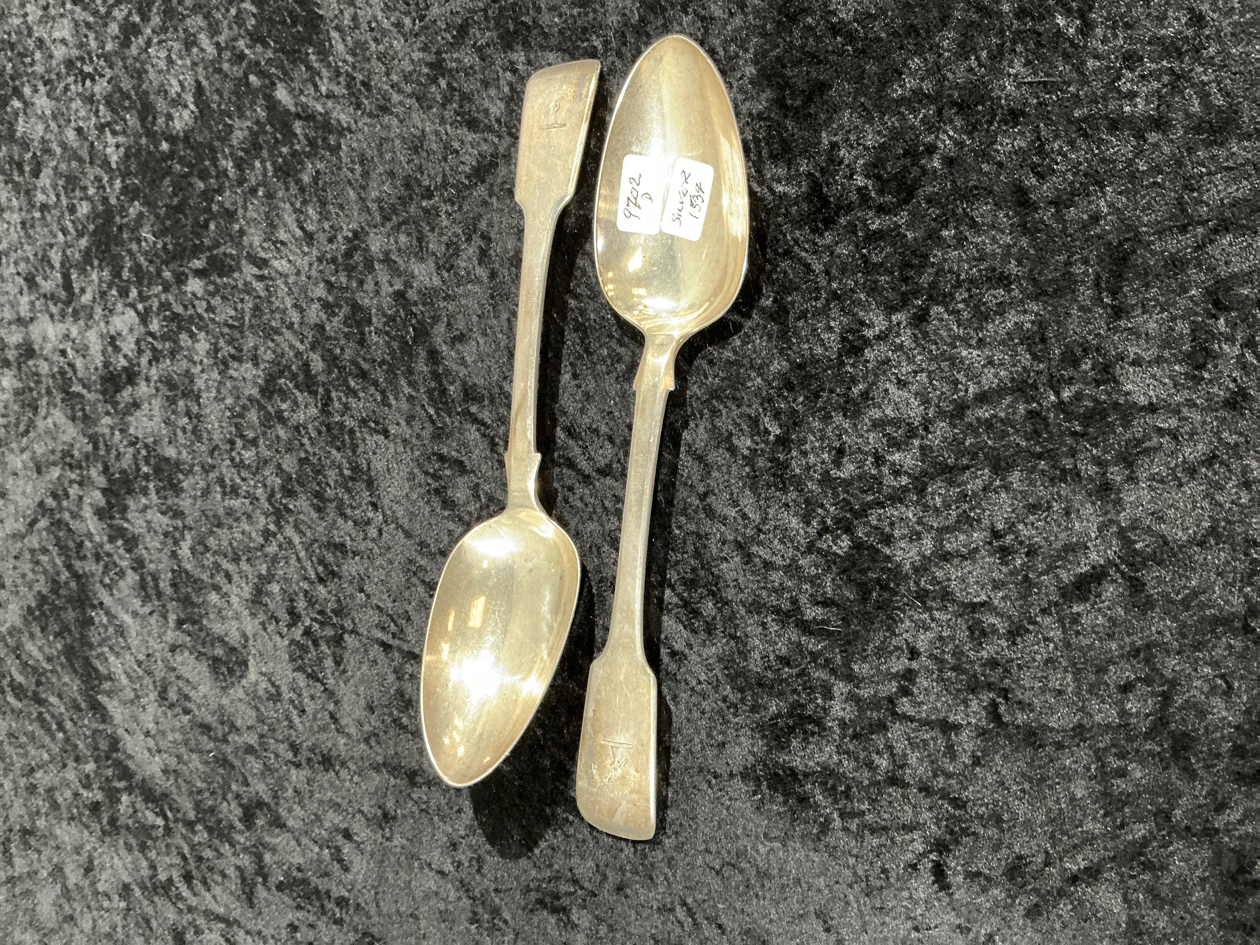 A Pair of Irish George IV Sterling Silver Fiddle Pattern Tablespoons by William Cummings