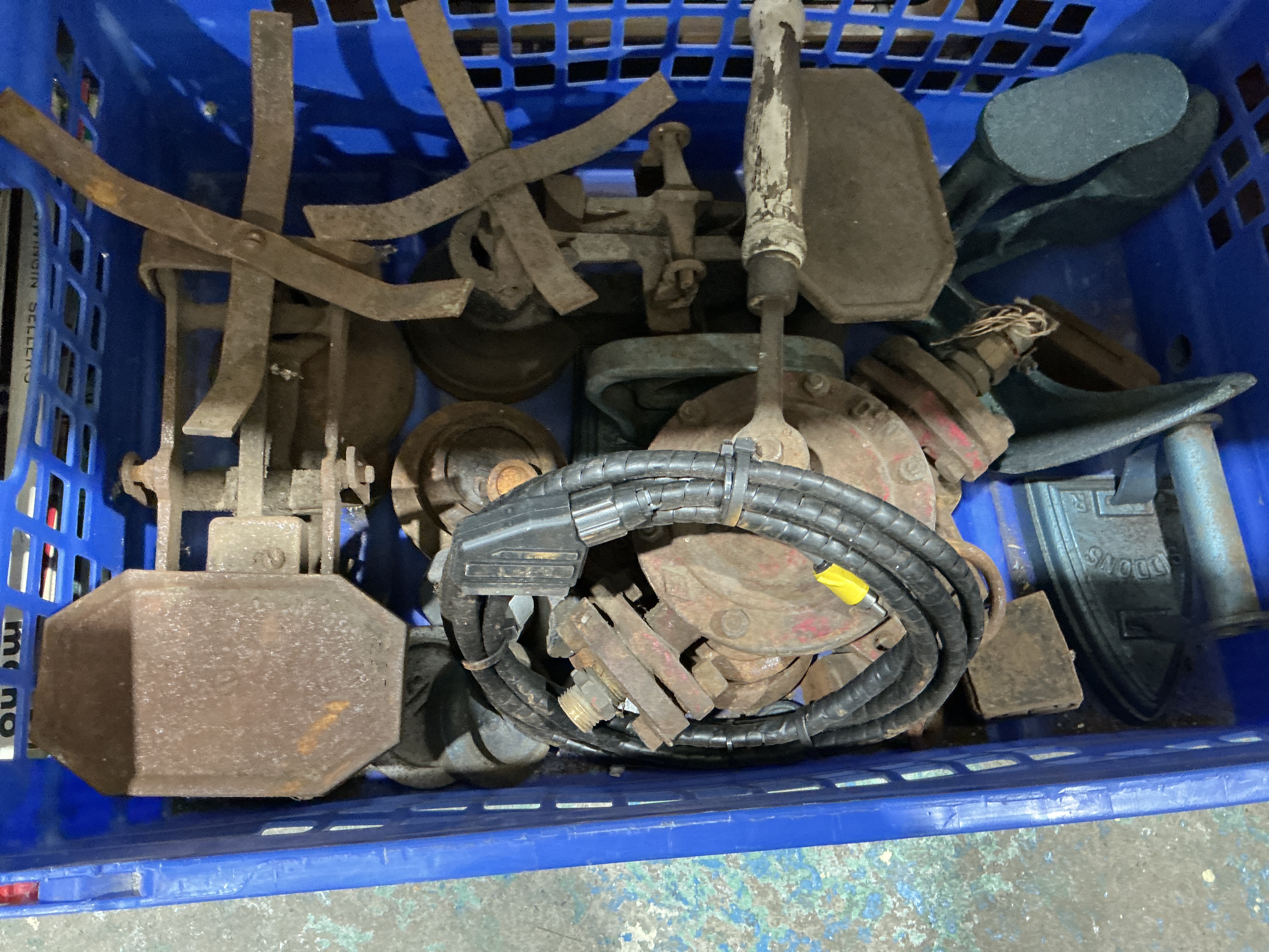 An Assortment of Vintage Cast Iron Domestic Tools and Industrial Components including a Siddons Sad Iron