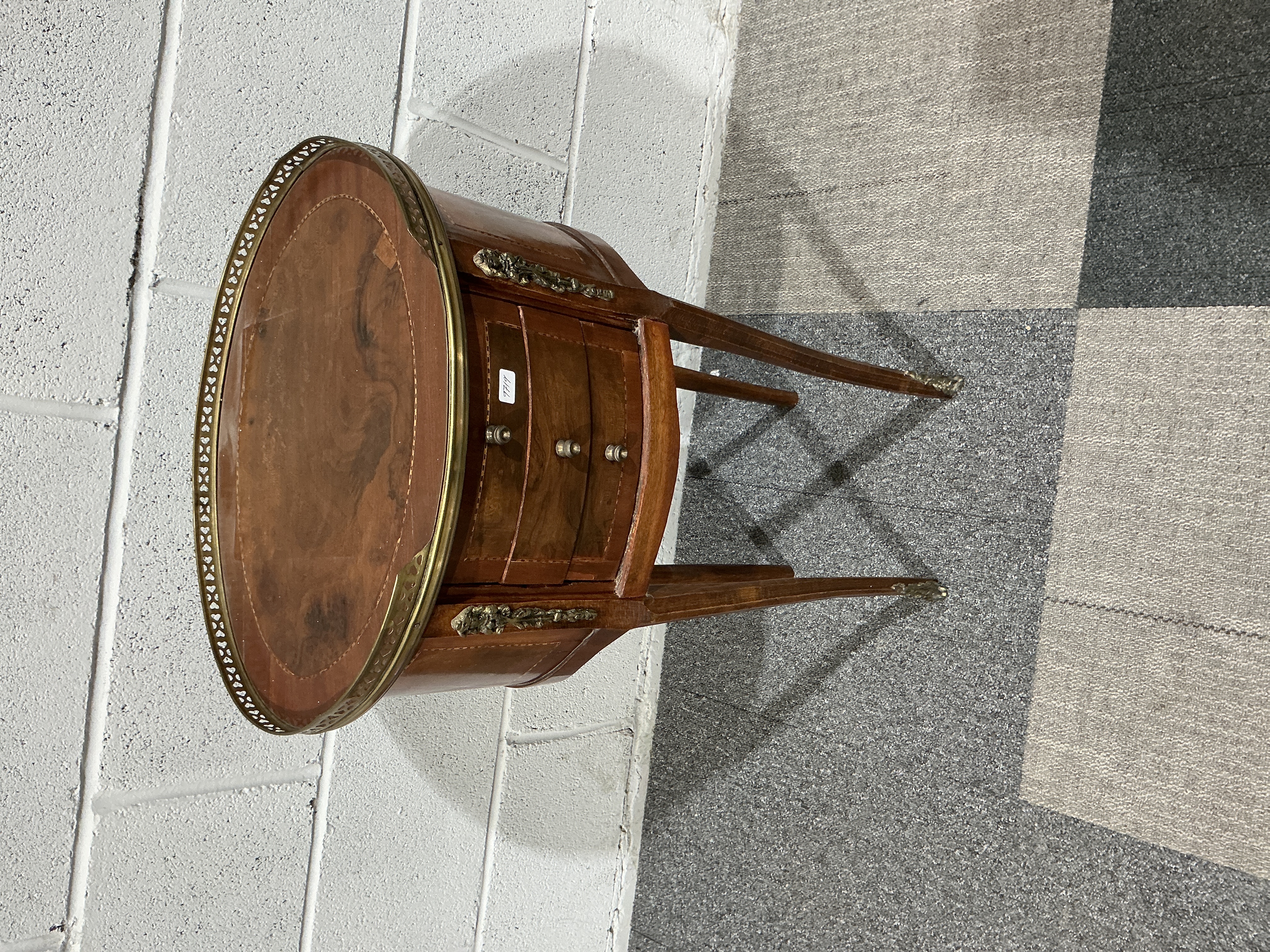 A French Louis XVI Style Mahogany and Brass Mounted Bouillotte Side Table