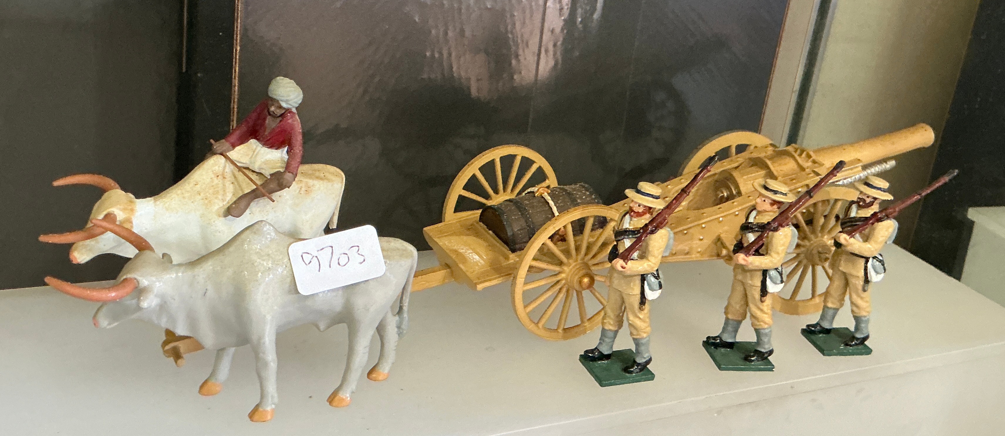 A Set of William Hocker British Indian Army Bullock-Drawn Siege Gun and Infantry Figures