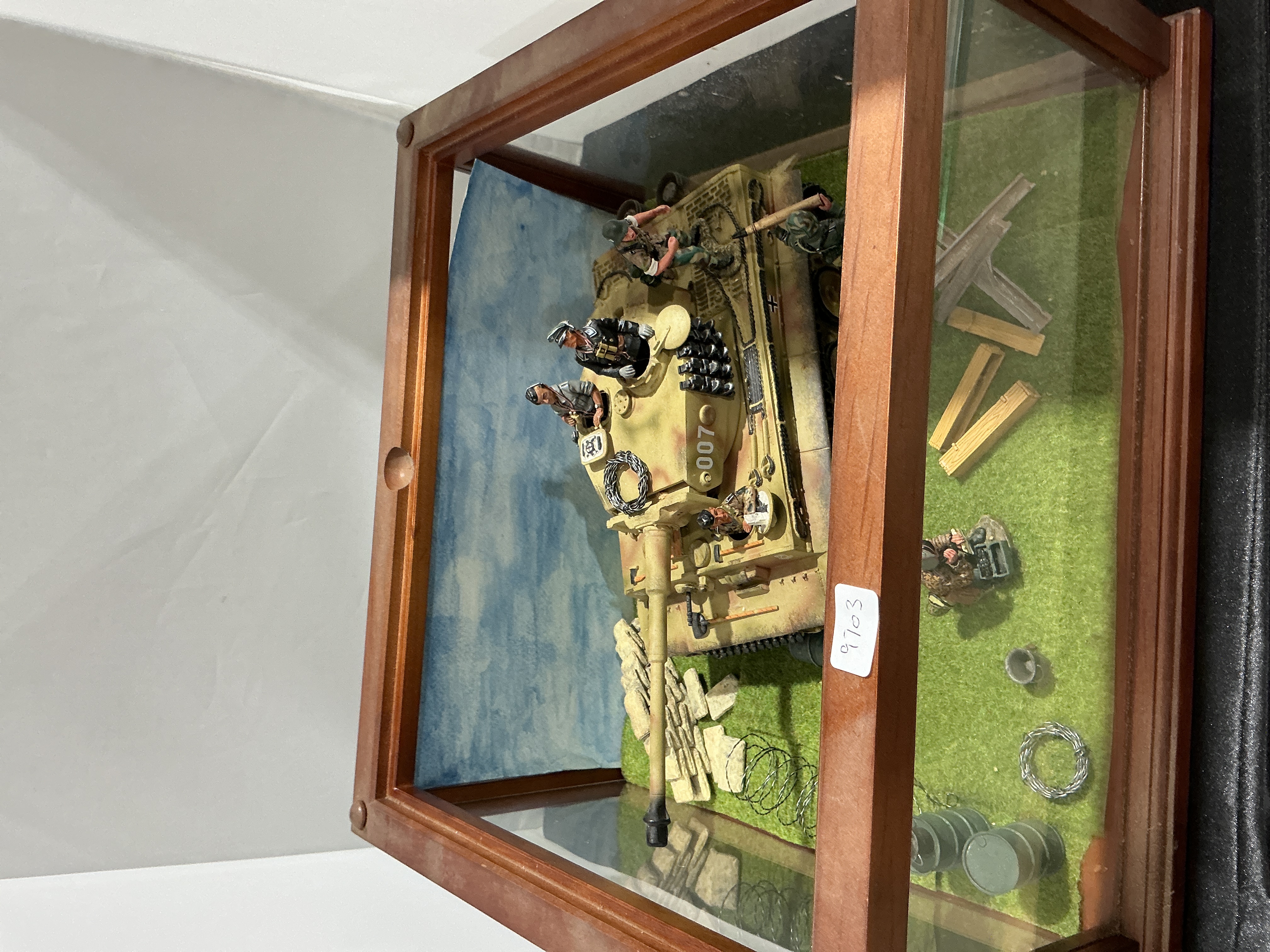 A Detailed Scale Model Diorama of a WWII German Tiger I Heavy Tank in Glass Display Case