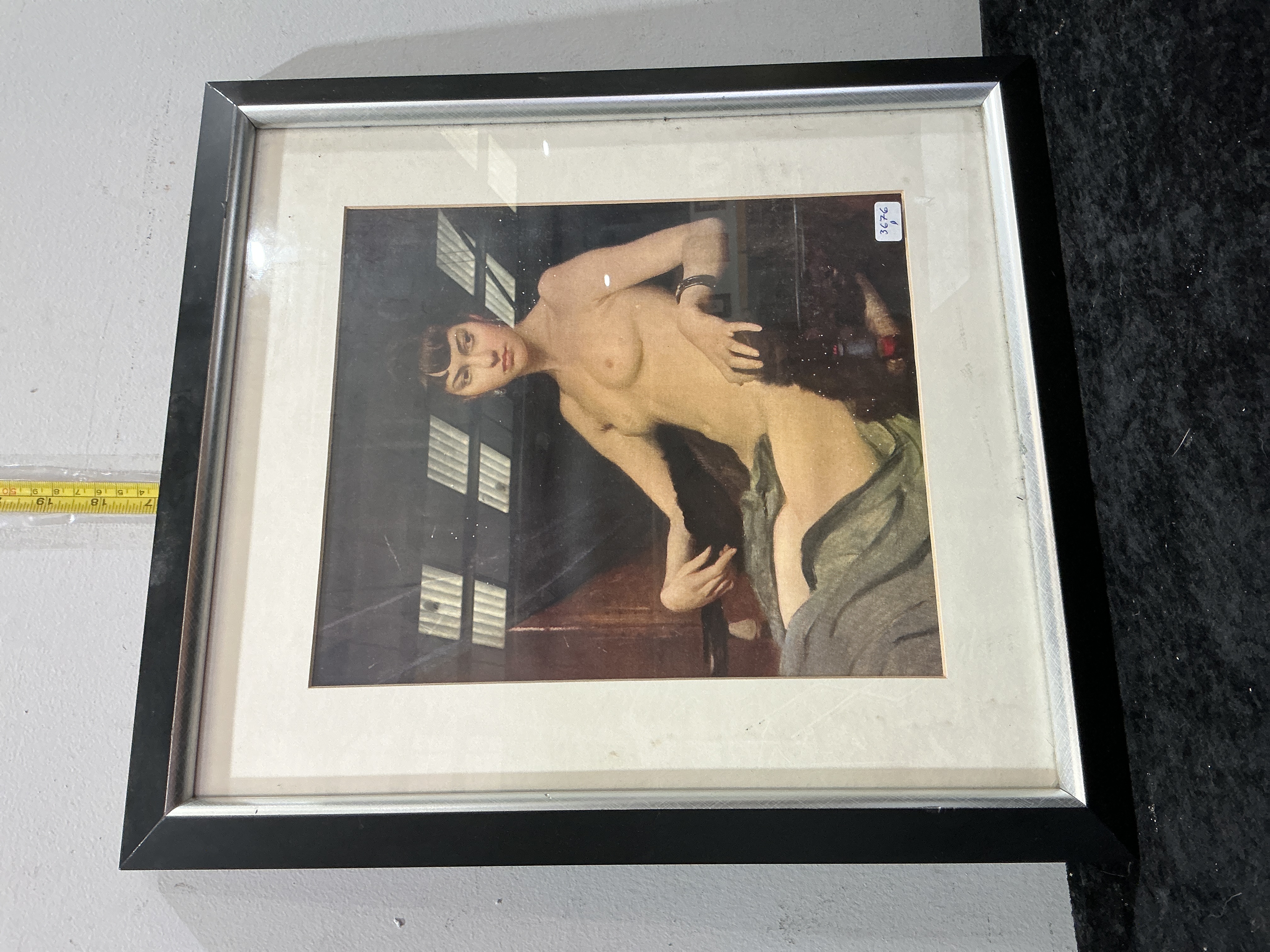 A framed art print in the style of Sir William Russell Flint depicting a semi-nude woman with dark hair in a studio setting, measuring approximately 51 cm by 51 cm.